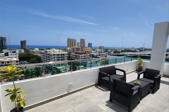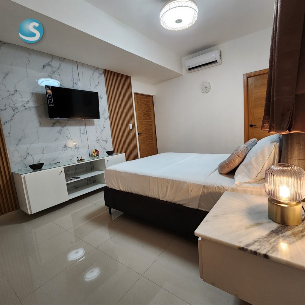 G-15 ***Nuevo Apto de Lujo a estrenar, alquiler en Gazcue** Descripción: 8vo. Piso con Vista 180° Amueblado Full Decoración hermosa en Estilo Nórdico. 1 dormitorio 1.5 baños 1 parqueo Sala Desayunador Cocina Modular equipada. Área de Lavado Área de Bar Balcón grande con área para BBQ Closet modernos dividido estilo nórdico. Terminaciones de 1era Ventana Anti-ruidos Todo nuevo a estrenar Climatizado Full en todas las áreas con A/C inverter de alta eficiencia. 2 SmartTv Lavadora Secadora, ect. Amenidades: Gimnasio Lobby lujoso Área Social Área de Reuniones (para eventos familiar o laboral con todo equipado) Terraza con Vista 180° 2 ascensores Vigilancia 24 horas Cerca eléctrica Circuito Cerrado Control de acceso a todas las áreas Mayordomía Precio de Alquiler US$985.00