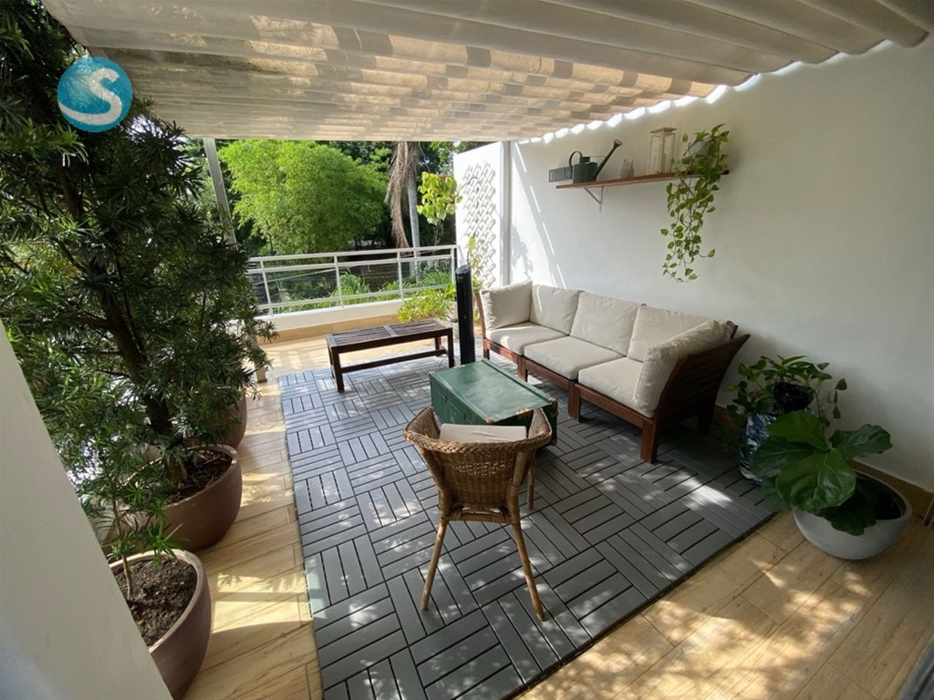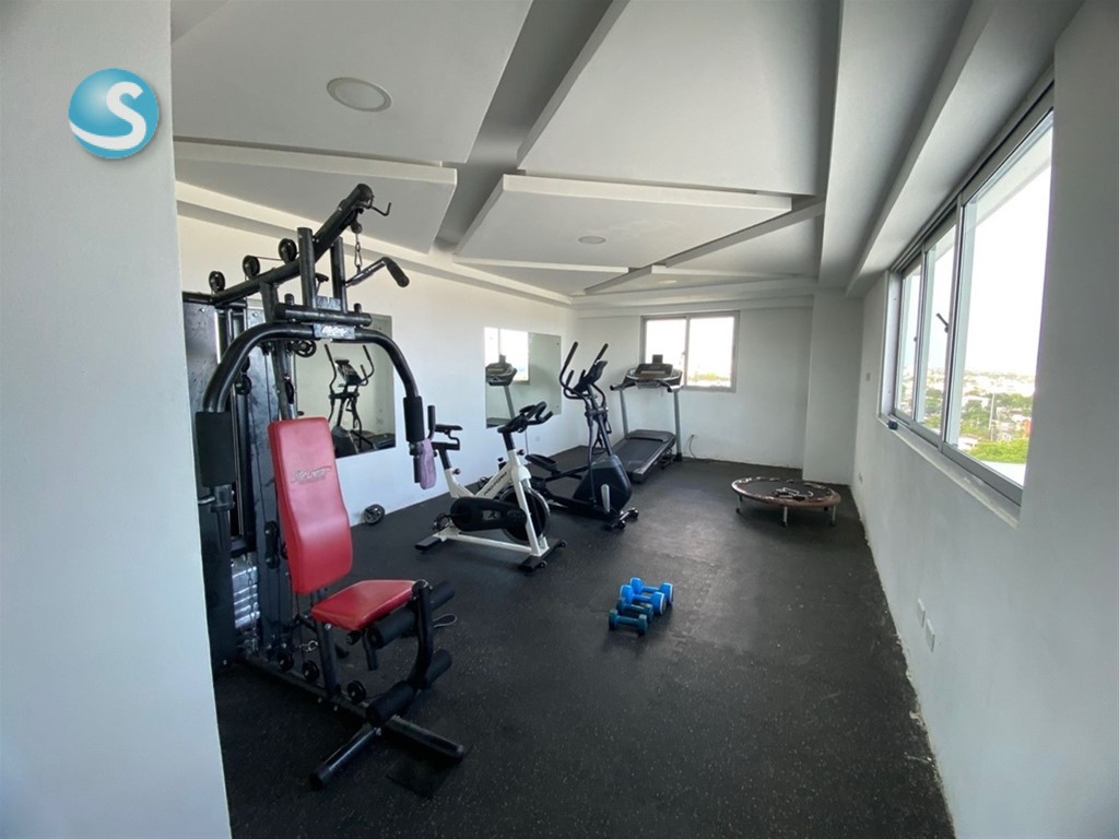 Apto con terraza en Gazcue hermoso! Dos habitaciones cada una con su baño Medio para visita Balcon y terraza Dos parqueos techados lineales Lobby GImnasio Area social para eventos y reuniones con baño Ascensor Planta Full Gas Comun Incluye algunos mobiliarios a discutir Shutter en la terraza Lobby Porton Electrico