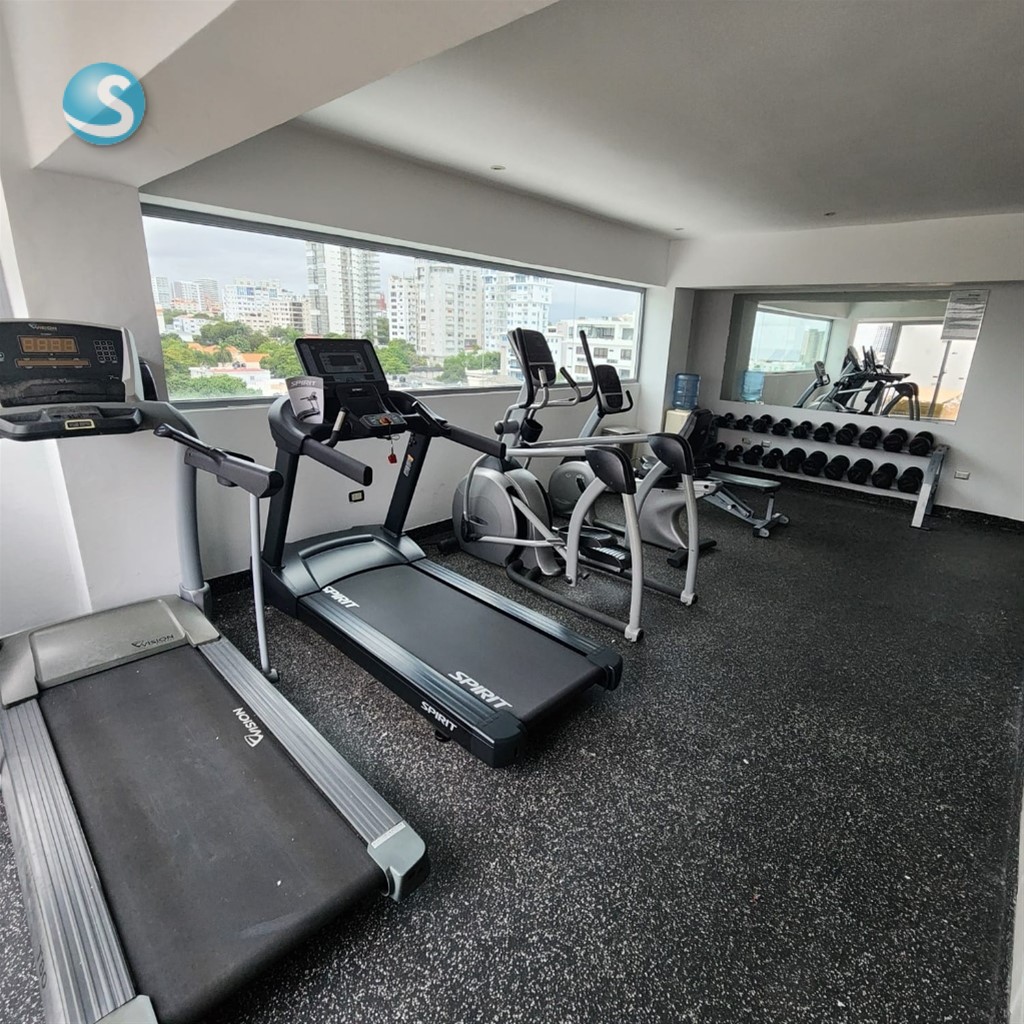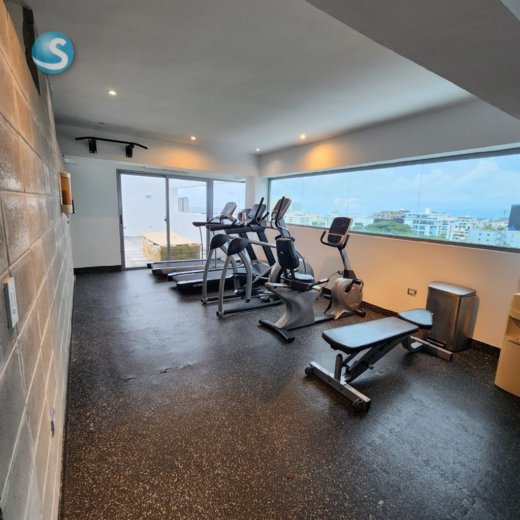 Distribución: • Un (1) parqueo • Una (1) habitación con clóset • Sala • Desayunador • Cocina modular • Área de lavado • Balcón • Un (1) baño y medio (½) Características y terminaciones: • Terminaciones de primera • Ventanas antirruidos • Decoración moderna en tres (3) tonos europeos • Climatizado full • Totalmente amueblado Facilidades del edificio: • Gimnasio • Lobby y sala de espera • Área social • Área de reuniones • Área de BBQ • Dos (2) terrazas con vista panorámica al Malecón de Santo Domingo • Ascensores • Vigilancia 24 horas • Cerca eléctrica • Circuito cerrado de seguridad • Servicio de mayordomía