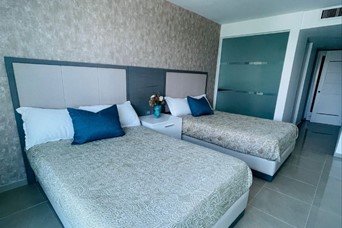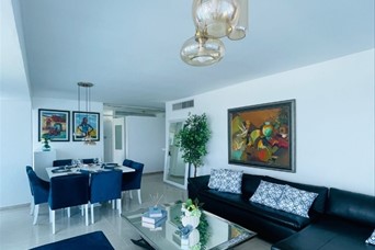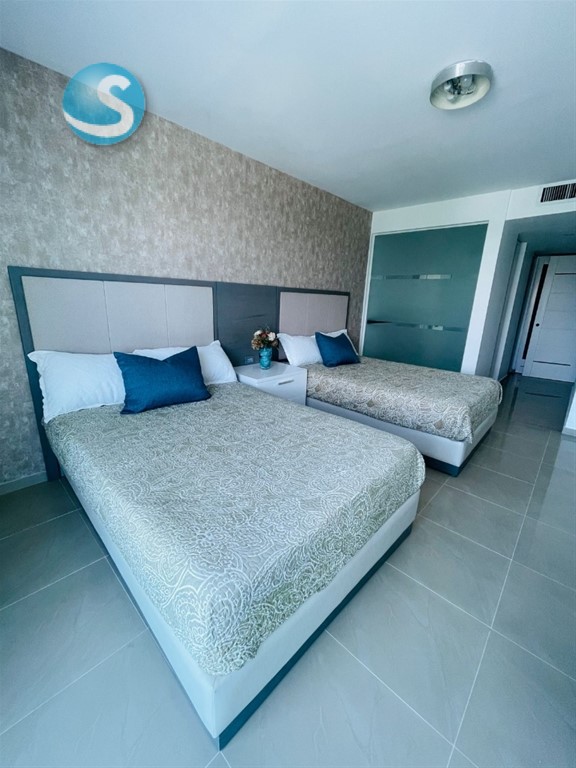 Alquilo apto. totalmente amueblado frente al mar. Séptimo piso Balcones con vista al mar y la ciudad 2 habitaciones 2 baños Baño de visitas Cuarto de servicios Área de lavado Family Sala/ Comedor Cocina Área común con gazebo, gimnasio, sauna, piscina, jacuzzi y área de BBQ Parqueos para visitas 2 parqueos techados Elevadores Incluye: Mantenimiento, Internet, Cable y Teléfono. Precio: us$2,000