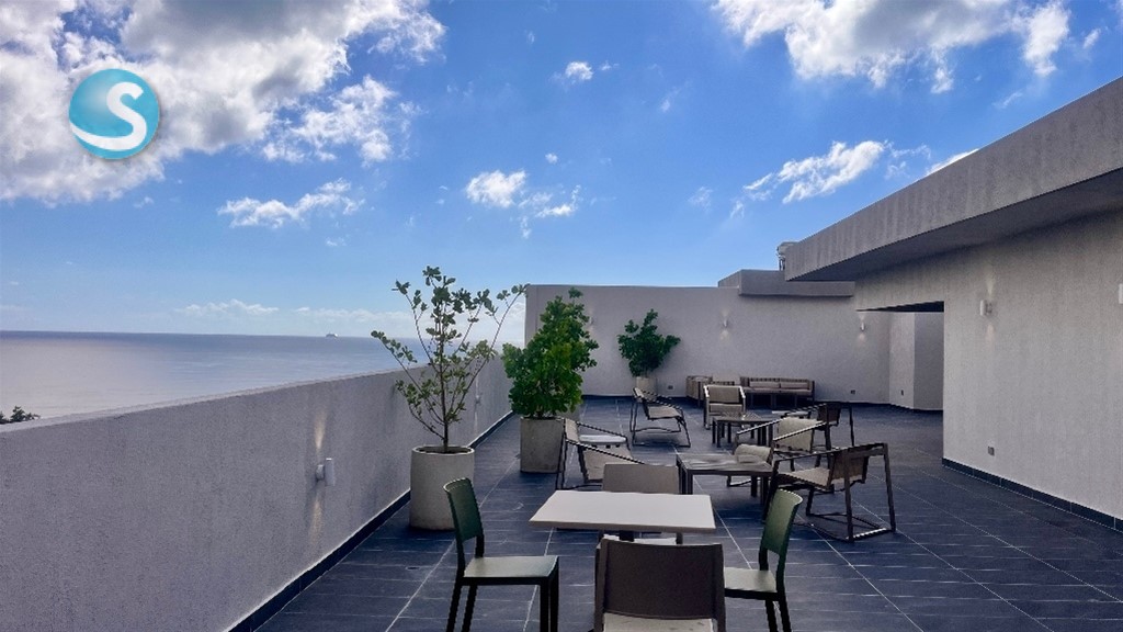 Alquiler Amueblado, frente al malecón, 1 habitación, 1 baño amplio, 1 parqueo techado.balcon. Piscina con terraza amueblada, baños, área social climatizada y al aire libre frente al mar, área juegos infantiles, canchas, gimnasio con sauna. Seguridad 24/7. Lobby con recepción 24/7.