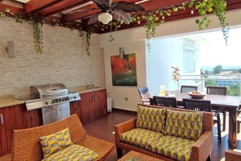 Te alquilo hermoso, acogedor y muy cómodo espacio en piso 6 con amplia mirada al mar y espectacular terraza techada y área de family room. Distribución: Balcón Sala Comedor Te ofrezco dos niveles de comodidad En primer nivel: 2 dormitorios 2 baños 1/2 baños de visitas Cocina y electrodoméstico de calidad Área de lavado Cuarto de servicio con baño En segundo nivel: 1 dormitorio principal con su respectivo clóset y baño 1/2 baño de visita Amenidades: Lobby de lujo Planta eléctrica Gas por tubería Elevador Intercom Calentador Terraza Family Room Vista al mar BBQ 2 parqueos techados