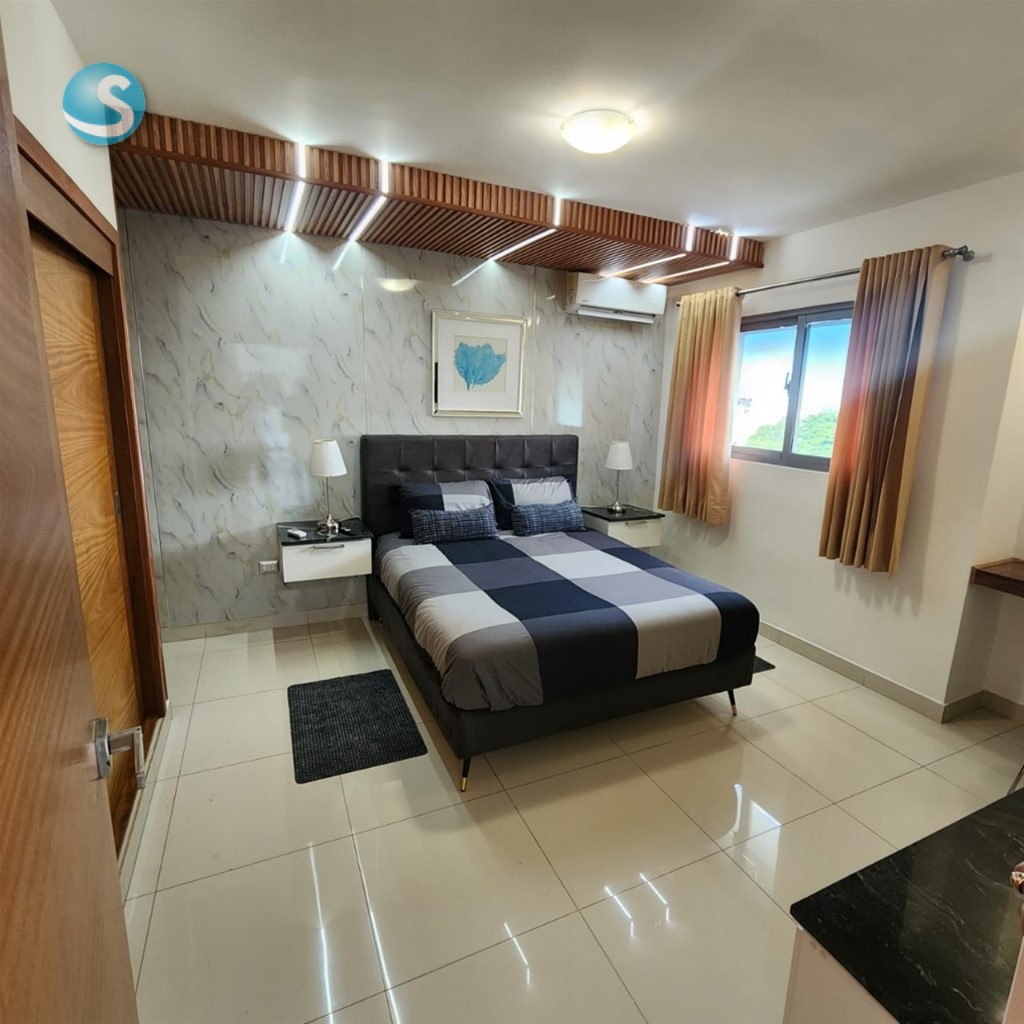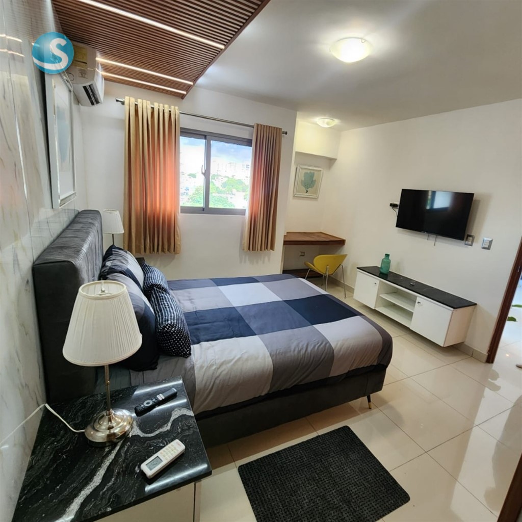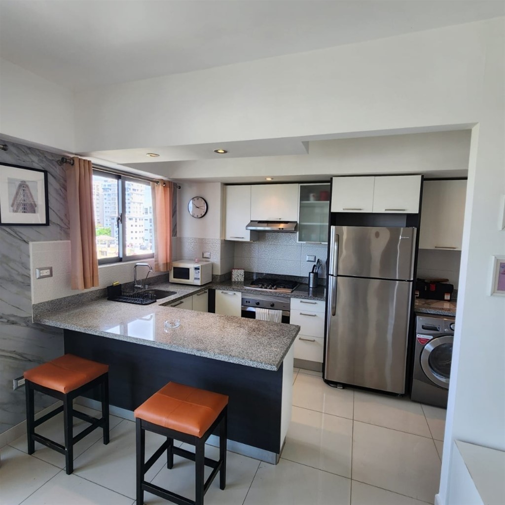 *ALQUILO APARTAMENTO AMUEBLADO GAZCUE* 1 habitación 1.5 Baños 1 Parqueo 73Mt2 Sala Cocina modular Desayunador Área de lavado Balcón con malla de protección ? Full amueblado y climatizado. ? Ventanas anti-ruido y decoración europea en 3 tonos. ?? Facilidades exclusivas: Gimnasio Lobby Área social BBQ Terrazas con vista panorámica Ascensores vigilancia 24/7 US$930 ¡Tu nuevo hogar te espera en Gazcue! ??? Código: MR.