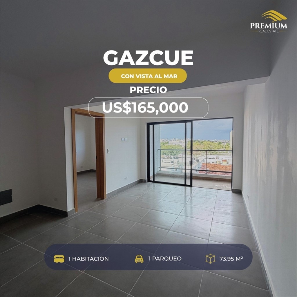 Gazcue ??A estrenar con Vista al Mar ?? Precio de Venta US$165,000 Piso 8 Apartamento de 73.95m2 Total / 60m2 construcción 1 habitación 1 baño 1 parqueo Balcón Sala-comedor Cocina integrada Área de lavado AMENIDADES ÁREAS COMUNES - Terraza techada/destechada - Cancha de padel - Patio exterior - Gazebo - Lobby - Área de juegos para niños - Piscina - Pasarela techada - Mini fútbol - Salida parque central - Garita de acceso - BBQ - Gym - Sauna