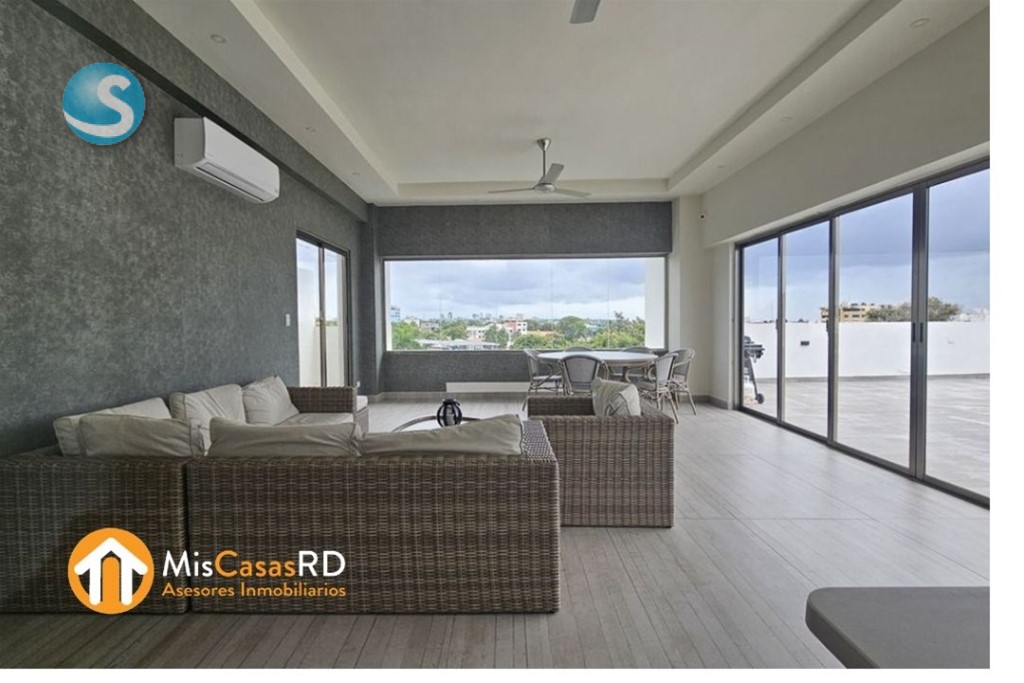 Hermoso apartamento en venta en Gazcue amueblado 150m2 4to nivel 3 habitaciones 2.5 baños 2 parqueos techados independientes Amplio balcón Sala, comedor Cocina Cuarto de servicio Área de lavado Ascensor Planta full Gas común con medidor Área social con Terraza techada Gimnasio Terraza destechada Jacuzzi Mantenimiento RD$9,680 US$265,000 amueblado