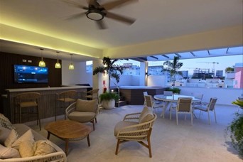 Gazcue Moderno apartamento totalmente nuevo en la prestigiosa zona de Gazcue. - 73 m² en 5to piso - 1 habitación, 1.5 baños - Sala, comedor, desayunador y cocina modular - Área de lavado y parqueo privado - Ventanas anti-ruido y terminaciones de primera Incluye línea blanca completa: aire acondicionado, estufa de alta gama, nevera de dos puertas y lavadora-secadora integrada. La torre ofrece exclusivas amenidades: lobby elegante, sala de espera, área social, lounge bar, jacuzzi, BBQ, terraza con vista panorámica de 180°, ascensores modernos, seguridad 24/7, circuito cerrado y mayordomía. ?? Ubicación privilegiada en Gazcue ?? Alquiler: US$820