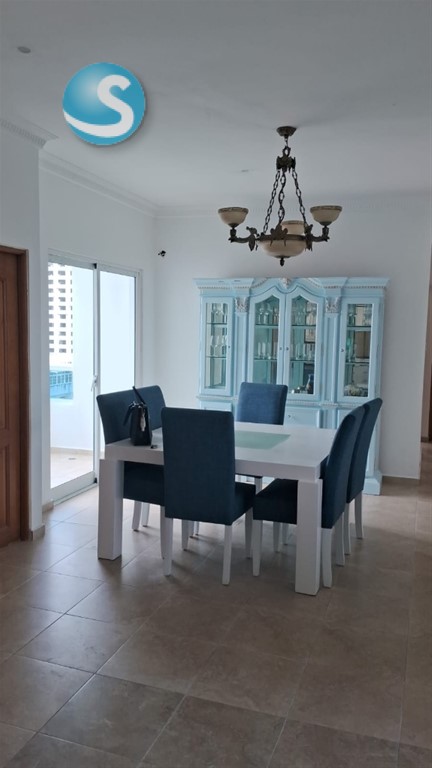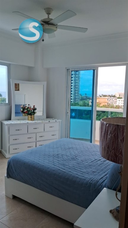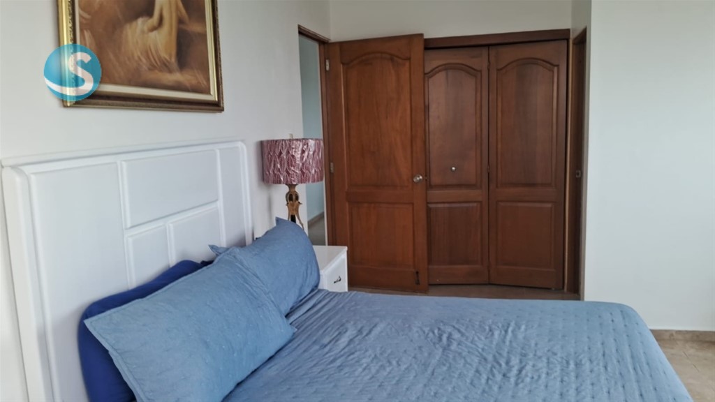 Apartamento de 137 metros, tres dormitorios, dos baños y medio, el cuarto principal tiene su baño, clóset amplio, balcón, el otro baño comunica a los dos dormitorios, clóset en cada uno, sala, comedor con balcón, cocina con desayunador, cuarto de servicio y área de lavado, escalera de servicio, elevador, sexto piso, dos parqueos techados, seguridad 24 horas, piscina, portón eléctrico, amueblado completo. Segunda linea de playa con hermosa vista al mar. Precio 229000 dólares negociable.
