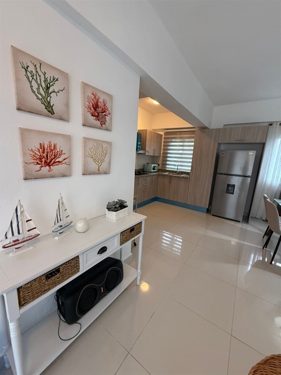 Apartamento con terraza privada, en casi primera linea de playa. Totalmente nuevo y amueblado. Cuenta con dos habitaciones, dos baños, balcón lateral y 1 parqueo. Ademas cocina modular y ascensor. Vista espectacular en rooftop piso 7. Incluye cubículo de playa, área BBQ, Jacuzzi y solarium. Acceso delantero por Boulevard, y trasero para acceso a la playa.