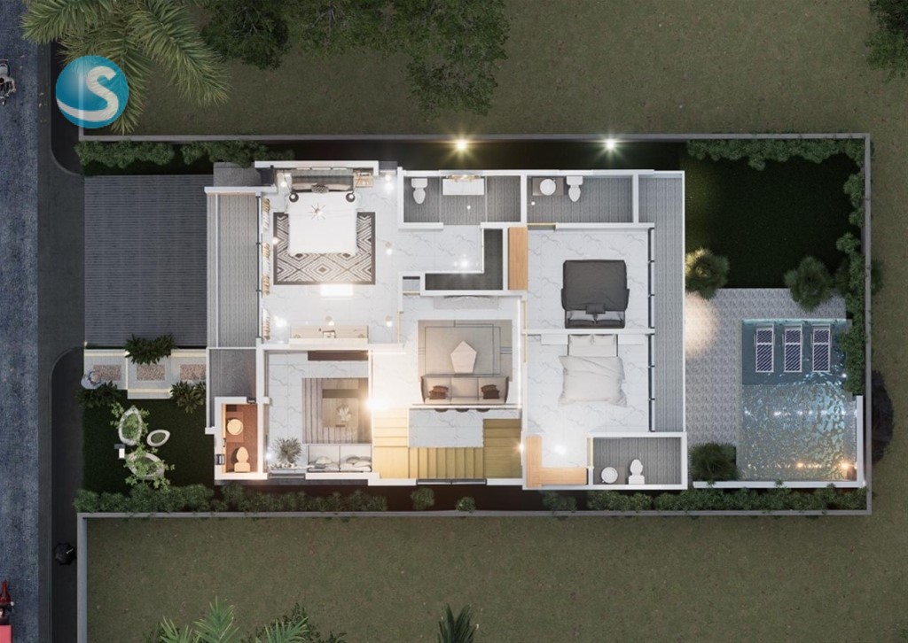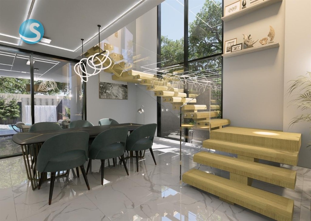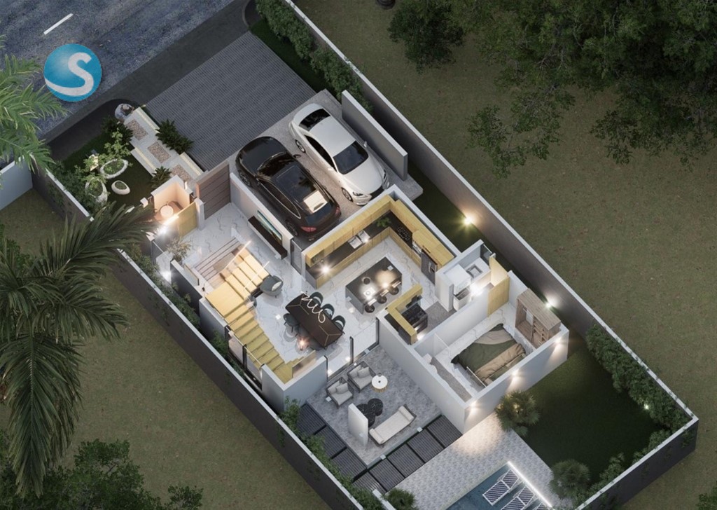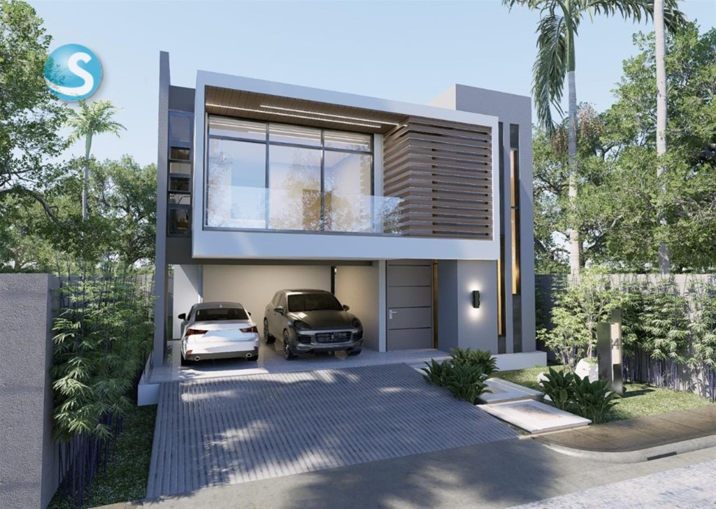 Hermosa casa de dos niveles ubicada en Gurabo, Santiago de los caballeros en Urb. Don Fernando cerrada con vigilancia 24hrs y casas con concepto abiertos y estilo moderno, calle hormigón armado. Sus características son: Primer nivel -Amplio frente -Marquesina doble capacidad para 4 vehículos -Sala -Comedor -Cocina fría -Cocina Caliente -Area de lavado -Dormitorio de servicio o de huésped y su baño -Baño de visita -Terraza -Un amplio patio Segundo nivel -Sala de estar -Closet de ropa blanca -Dormitorio principal -Walking closet -Baño principal -Balcón principal -2 Dormitorios Comunes con sus baños y balcones Amenidades -Casa con concepto abierto -Sistema de alarma -Cocina Fría con extractor, estufa empotrada y horno empotrado -Terminación en sheetrock -Terminación en madera preciosa -Piso porcelanato -Escalera en madera concepto moderno -Meseta en granito y revestimiento en granito -Intercom -Tinaco -Bomba de presión de agua -Cisterna -Calentador -Pre-instalación de cámara -Pre-instalación de aire acondicionado -Pre-instalación de inversor y baterias Con una área de 270m2 de construcción y 299.86m2 de solar. Separación 10% y en comodas cuotas para completar el 30%. Precio del proyecto USD$335,000 y con piscina USD$355,000.
