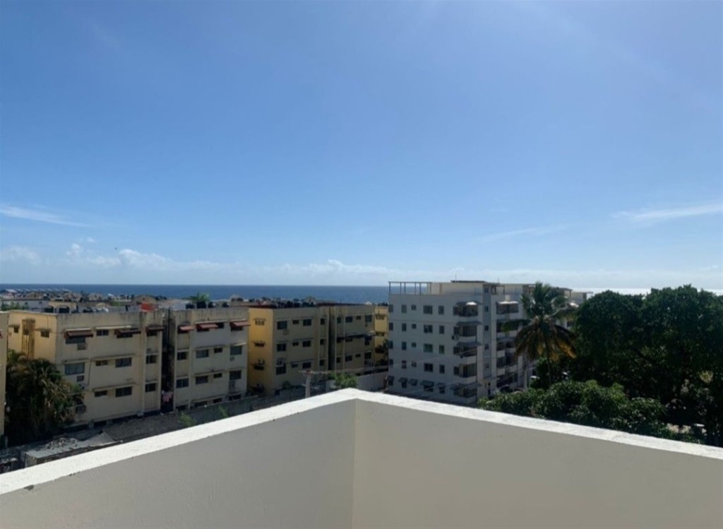 Alquilo 5to nivel amueblado, no ascensor Frente al mar 3 dormitorios, principal con baño y aire acondicionado Baño comun Sala/comedor Cocina Area de lavado Tv en la habitacion principal Area de terraza privada en el techo Con kitchenete y medio baño de uso comun 1 parqueo Residencial cerrado y con seguridad Mantenimiento incluido RD$40,000.00