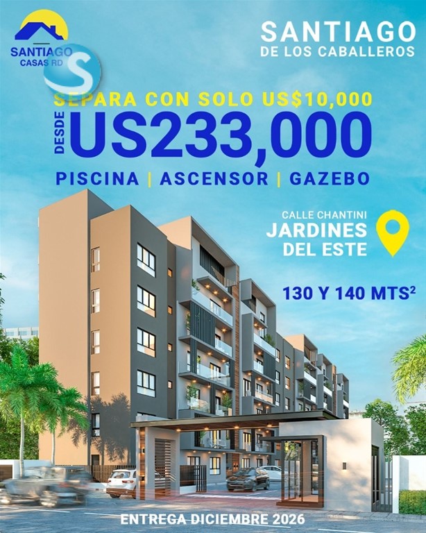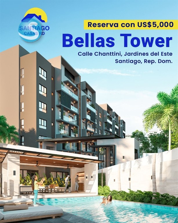 ?? Bella’s Tower – Proyecto Exclusivo en Jardines del Este, Santiago Justo detrás de Las Quintas de Pontezuela, en una de las zonas más estratégicas y exclusivas de la ciudad. ?? A pasos del HOMS, con accesos rápidos por la Autopista Duarte y la Rafael Vidal. ?? Un proyecto moderno diseñado para el confort, la elegancia y la tranquilidad de tu familia. ? Características de los apartamentos • 3 habitaciones (principal con baño y walking closet) • 2 baños + medio baño para visitas • Sala | Comedor | Cocina • Balcón • 2 parqueos • Penthouses disponibles ?? Metrajes: 118 m² | 130 m² | 140 m² ?? Precios desde: US$212,058 ?? Penthouses desde: US$349,000 ?? Facilidades de pago • Reserva con US$5,000 • Separa con solo US$10,000 • Entrega: Diciembre 2026 ?? Piscina | ?? Ascensor | ?? Gazebo | Proyecto exclusivo de pocas unidades. ?? Calle Chantini, Jardines del Este, Santiago RD. ?? Contáctanos hoy y asegura tu inversión con Santiago Casas RD. #Bella’sTower #SantiagoCasasRD #ApartamentosEnVenta #SantiagoRD #ProyectoExclusivo #InversiónSegura #VidaModerna Mas información 829-420-5087 Fradery Ruiz asesora inmobiliaria de Santiago Casas RD