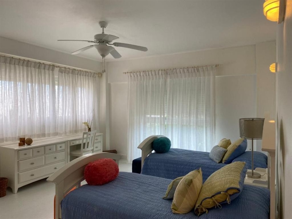Para mayor información comunicarse con Eliana Guerrero de Camilo al (809) 696-3676 Precio de alquiler: US$ 3,000.00 Descripción Exquisito apartamento amueblado en primera linea de playa, que consta de 3 habitaciones y 3 baños, con espectacular vista al mar. En edificio con buen mantenimiento y amplias áreas sociales. Mejoras Balcón Sala/Comedor Cocina Piscina Parqueo Lavado A/C Calentador Planta Eléctrica (Común) Áreas Sociales Conserje Ducto Basura Esc. Emergencia Gimnasio Salón Actividades