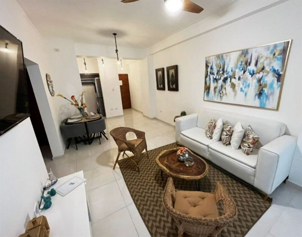 .Apartamento amueblado en zona turistica de Juan Dolio 90.35 mts 2do nivel Balcon Sala Comedor 2 habitaciones 2 baños Area de lavado 1 parqueo Piscina Planta Ascensor Seguridad 24 horas CODIGO.6626