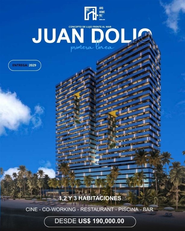 PROYECTO DE APARTAMENTOS DE LUJO EN PRIMERA LINEA DE PLAYA – JUAN DOLIO. Descubra un exclusivo proyecto residencial frente al mar, ubicado en la codiciada zona de Juan Dolio, diseñado para quienes buscan vivir con el privilegio de tener la playa como su jardín privado. ??amenidades de primera clase: ?Más de 8,000 m² de áreas sociales ?4 Piscinas infinity y 2 jacuzzis con vista al mar ?Spa & Wellness Room con sauna y área de masajes ?Coworking y Business Center ?Cine privado y gimnasio equipado ?Teens Club y área de juegos para tus pequeño ?ubicación estratégica y a 10 minutos de el aeropuerto internacional de las americas Opciones de inversión flexibles con plan de pago financiamiento disponible. ?? Reserva con solo $1,000 USD y asegura tu unidad frente al mar. Entrega programada a 36 y 46 meses! precio desde US$210,000 Plan de pago FLEXIBLE???? ?? contactame para más información. katherin mejia broker inmobiliario | Especialista en inversión ArqhomeRD inmobiliaria ??1.829.987.2005