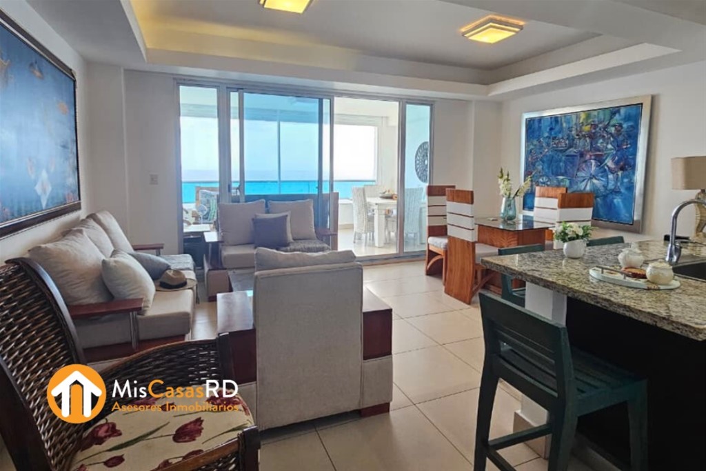*Haz Realidad Tu Sueño de Vivir Frente al Mar* ¿Quién dijo que no puedes despertar cada día con el sonido de las olas y la brisa del mar? Es momento de regalarte el lujo que mereces. ¡Tu paraíso personal te espera en Juan Dolio, a tan solo 45 minutos de Santo Domingo! * Características Incomparables:* 119m² diseñados para tu confort Piso alto con vistas inigualables al mar Primera línea de playa: la arena a solo unos pasos de tu hogar Dos espectaculares piscinas para refrescarte Moderno gimnasio y áreas sociales exclusivas: lounge, gazebo, y más Zona para juegos, extensas áreas verdes y una amplia terraza para tu relajación Dos habitaciones, dos baños, cocina con desayunador, y sala para compartir momentos únicos Cuatro ascensores, lobby elegante y parqueo incluido Más que un apartamento, es el estilo de vida que siempre soñaste. *Precio:* US$265,000 ¡Agenda tu visita y descubre tu nuevo hogar frente al mar hoy mismo!