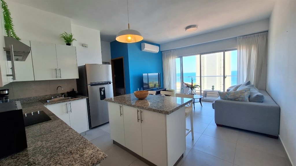 Juan Dolio Venta completamente amueblado Apartamento de 2 habitaciones Habitación principal con baño y vestidor Habitación secundaria con baño y closet Dos baños completos Balcón Sala Comedor Cocina integrada Desayunador Area de lavado Lavadora/secadora Estufa eléctrica Nevera de dos puertas Microondas Cafetera Vajillas Vasos Ropa de cama Toallas Descripción de la torre Areas sociales techadas y al aire libre Piscina Area infantil Gimnasio Salones de actividades