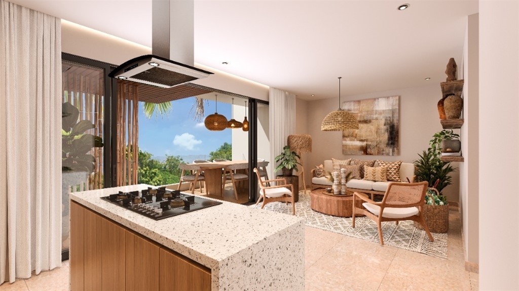 Vive el encanto del Caribe con estilo y confort Ubicado en el corazón del boulevard principal de Juan Dolio, este proyecto redefine el concepto de vida frente al mar, combinando el encanto caribeño con un diseño contemporáneo y una atmósfera de serenidad tropical. Este exclusivo complejo cuenta con 72 apartamentos de dos habitaciones, cuidadosamente diseñados para quienes buscan un equilibrio entre confort, elegancia y conexión con la naturaleza. Su arquitectura boho tropical crea un ambiente acogedor, mientras las piscinas tipo playa y los apartamentos con swim-up pool permiten disfrutar del agua cristalina directamente desde tu terraza privada. Cada rincón de este proyecto está pensado para tu bienestar: Lobby elegante con detalles de inspiración caribeña. Piscinas tipo resort rodeadas de jardines exuberantes. Gimnasio completamente equipado. Casa club y zonas de coworking para combinar placer y productividad. Área infantil y gazebos familiares, ideales para compartir momentos inolvidables. Senderos orgánicos y zonas de circulación para carritos de golf que conectan todo el conjunto. A solo 2 minutos de la playa Hemingway y 30 minutos del Aeropuerto Internacional de Las Américas, este es el lugar donde el lujo se encuentra con la tranquilidad del mar. Plan de pago flexible: Reserva con US$2,000 10% a la firma del contrato 30% durante la construcción 60% a la entrega Tu nuevo refugio en el Caribe dominicano. ================================================= Where Caribbean charm meets contemporary elegance Nestled along Juan Dolio’s main boulevard, this project is a stunning residential retreat that blends tropical serenity with modern sophistication. The project offers 72 exclusive two-bedroom apartments, designed for those who seek harmony between comfort, beauty, and coastal living. Its boho-tropical architecture and resort-style pools create a warm, relaxing atmosphere, while swim-up units allow you to step straight into crystal-clear water from your private terrace. Enjoy every moment surrounded by first-class amenities: Elegant lobby with Caribbean flair. Beach-style pools and lush gardens. Fully equipped gym and clubhouse. Co-working area, perfect for digital nomads. Children’s play zone and family gazebos for unforgettable gatherings. Golf cart pathways and organic trails connecting the entire property. Located just 2 minutes from Playa Hemingway and 30 minutes from Las Américas International Airport, it’s the ideal balance between luxury and relaxation on the Dominican coast. Flexible payment plan: US$2,000 reservation 10% at contract signing 30% during construction 60% upon delivery Your tropical home in the heart of Juan Dolio.