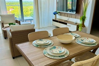 Piso 8 El apto tiene 77 metros, 2 habitaciones y 2 baños y un balcón tipo terraza amueblado completo. *Parrilla *Ascensor *Portero *Seguridad 24 Horas *Jacuzzi *Piscina *Gimnasio *Mascotas permitidas Precio de venta US$210,000 amueblado completo.