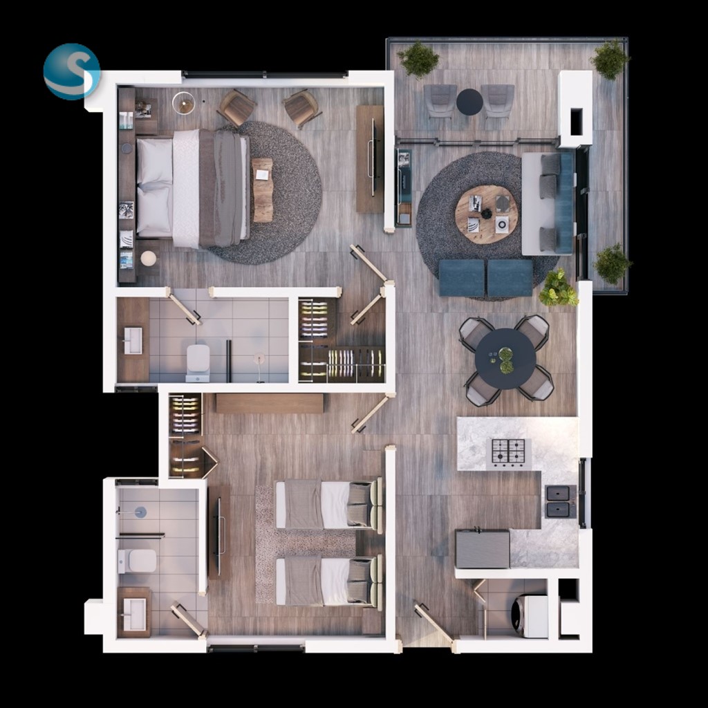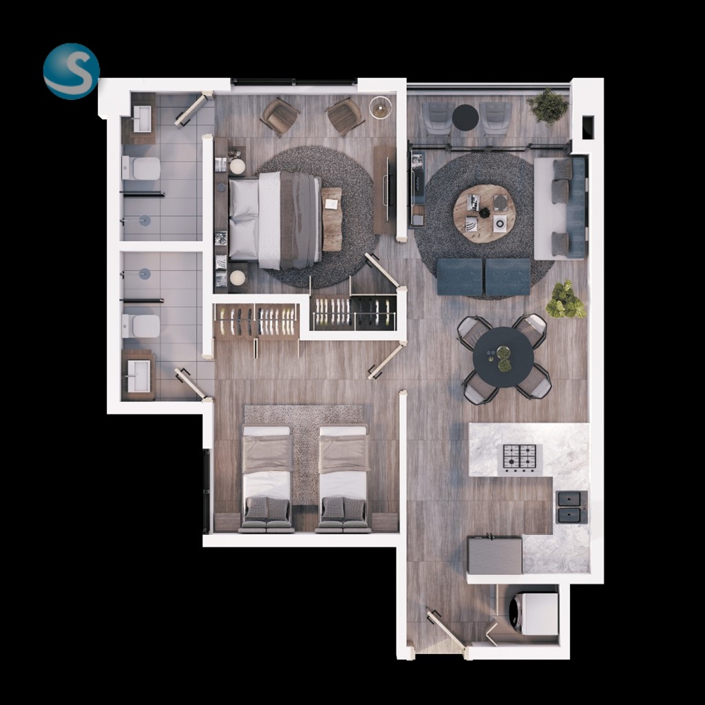 - 2 habitaciones