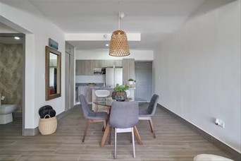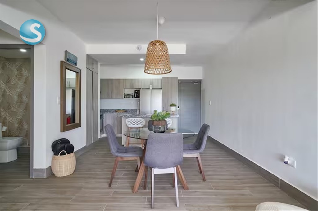 Hermoso apartamento totalmente amueblado ubicado en juan dolió : Dos (2) habitaciones 2.5 baños Sala/comedor Cocina modular Área de lavado Balcón con vista a la piscina . Completamente amueblado . Un (1) parqueo Lobby amueblado Recepción Garita de seguridad Piscina Área de juegos para Niños Gazebos Gym 2 Ascensores Hermosas áreas verdes Restaurante Seguridad 24/7 Cancha de pádel Membresía de Metro Country Club con acceso al Club de Playa y los campos de golf Precio de venta : US$ 230,000