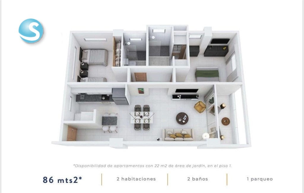Apartamento de oportunidad en venta en Juan Dolio, proyecto Tepuy Canaima, a entregarse en unos 60 días. Con vista a la piscina y ventilación lateral despejada. 86 metros 2 habitaciones 2 baños Sala, comedor Cocina con desayunador 1 parqueo Proyecto con piscina Area de BBQ Area infantil Ascensor Lobby Precio US$147,000