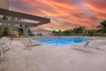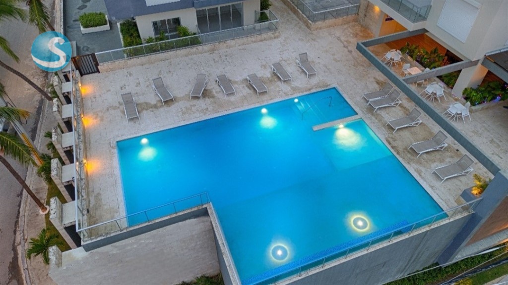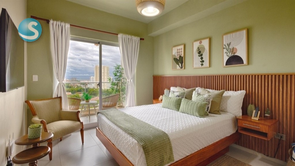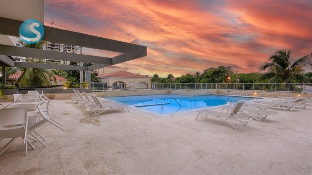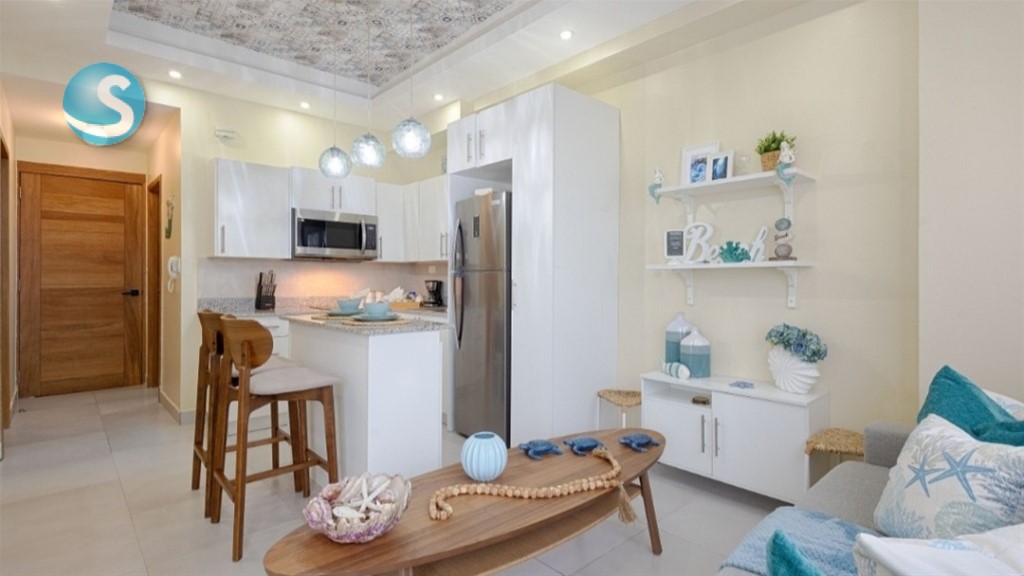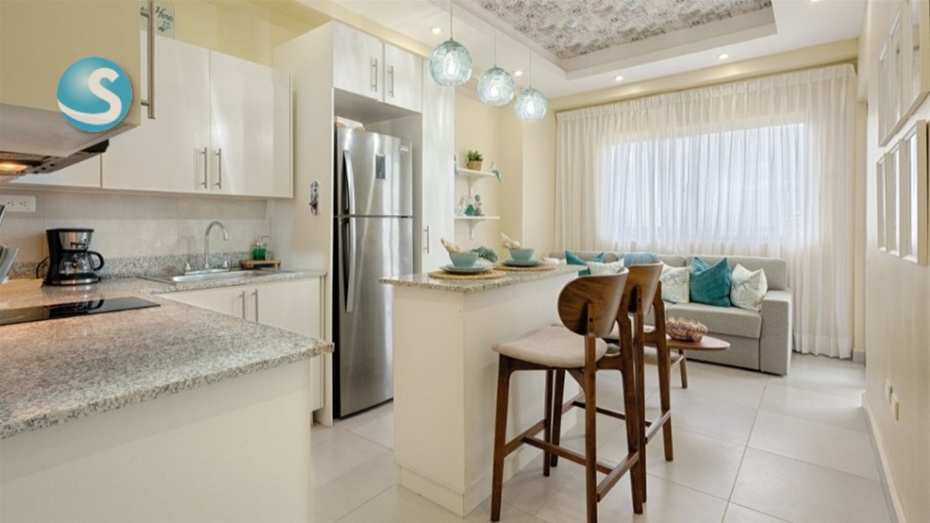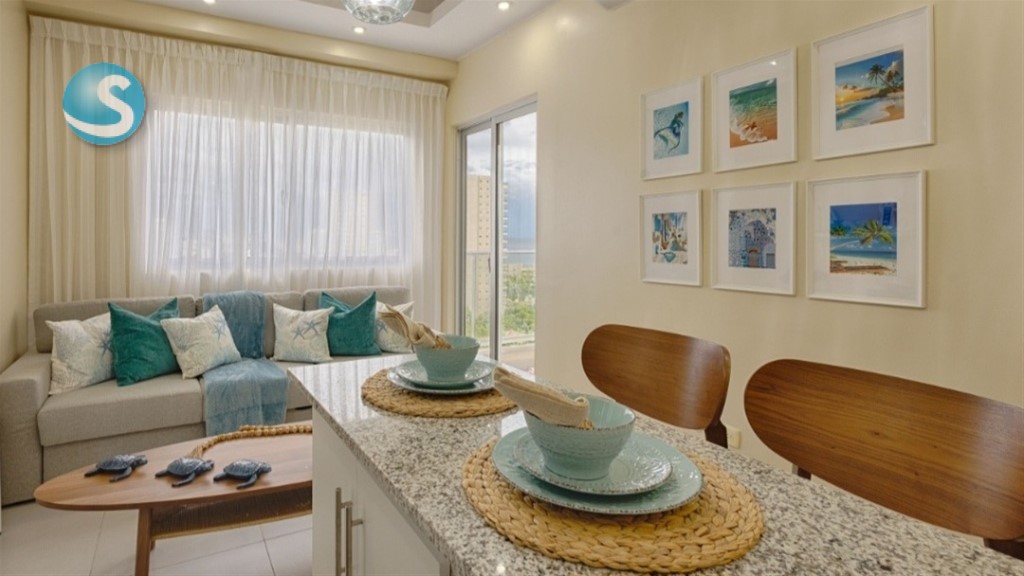 Juan Dolio Alquiler completamente amueblado Apartamento de 1 habitación Habitación principal con baño 1.5 Baños Balcón Sala Comedor Cocina integrada Desayunador Area de lavado Lavadora/secadora Estufa eléctrica Nevera de dos puertas Microondas Cafetera Vajillas Vasos Ropa de cama Toallas Calentador eléctrico Televisión Internet Aire acondicionado en habitación y sala Cerradura inteligente Maravillosa vista panorámica hacia el mar y tierra A dos minutos caminando de la mejor playa Cerca de bancos Restaurantes Plaza comercial Supermercados Lobby amplio BBQ Area infantil Bar Planta full Estar de empleados Gimnasio Hot tub Jacuzzi Jardines Lounge Piscina adultos y niños Portero Sala de juegos de mesa Salón multiuso climatizado Salón de eventos Seguridad 24 horas Terraza al aire libre y techada