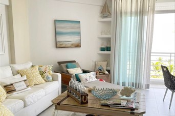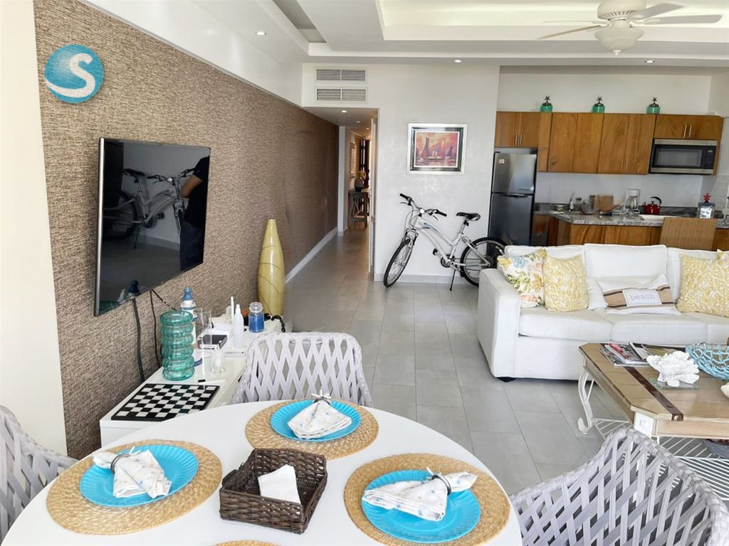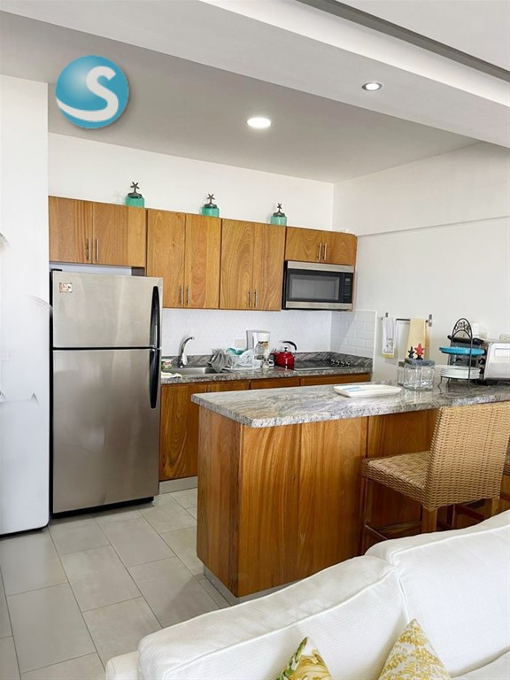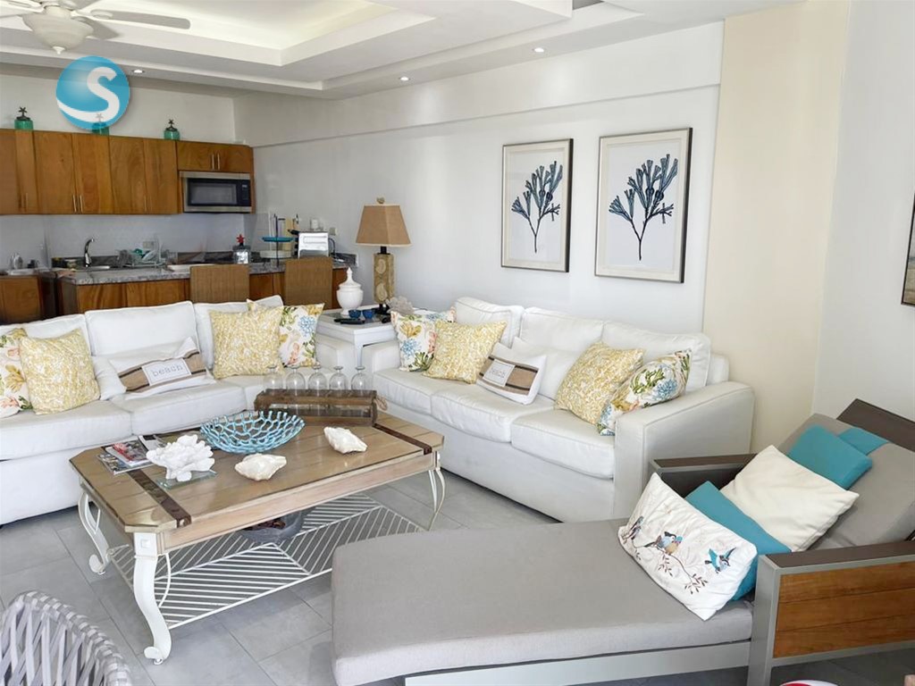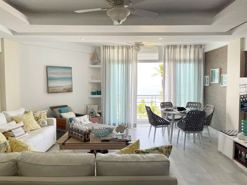 En primera línea de playa, este apartamento amueblado ofrece una experiencia de descanso para la familia en las playas de Juan Dolio. Distribuido en 2 habitaciones y 2 baños, incluye sala-comedor, balcón con vistas al mar, cocina con desayunador, área de lavado. Ubicado en el 5to piso, con acceso directo a la playa y ambientes listos para vivir. Hermosas áreas sociales con jardines, piscinas para adultos y niños, jacuzzis, terraza, área para BBQ, gimnasio, salón con TV, etc. Actualmente alquilado en US$1,400 mensuales, ideal para inversión; si buscas ocuparlo, el inquilino puede mudarse. Contáctame!