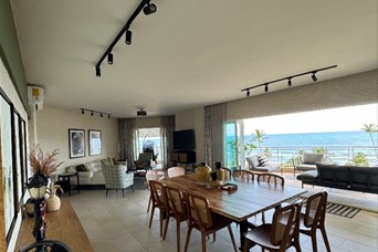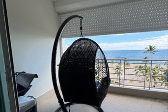 Juan Dolio Apart Frente al mar Apart 3 Hab con sus baños y closets Habitación secundaria con balcón Habitación principal con vista al mar 3 Baños Amplia Sala comedor Balcón lateral con vista al mar Terraza amplia con vista al mar y a la piscina Cocina abierta completamente equipada y moderna Amenidades Complejo Área de Piscina y jacuzzi Área de gimnasio Área de juego Acceso directo a Playa 1 Parque Privado Lobby tipo hotelero Parqueo para visitantes