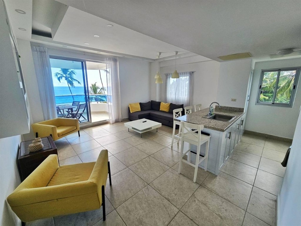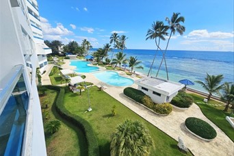 Apartamento en venta, Residencial Las Olas, Juan Dolio. USD$290,000 - Primera Línea de Playa - Piso 3(Con ascensor) - 2 Habitaciones - 2 Baños completos - Sala/Comedor - Cocina abierta con desayunador - Balcón con vista a la playa - Área de lavado - 115 mt2 en título - 1 parqueo privado - Residencial con Piscina, GYM, Área infantil. - Acceso privado a la playa - Lobby - Seguridad 24/7 - Mantenimiento USD$257 Luis Miguel La Paz