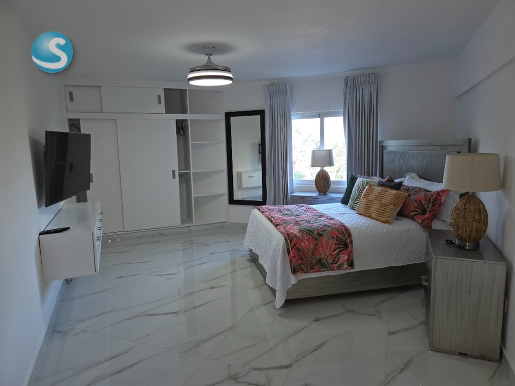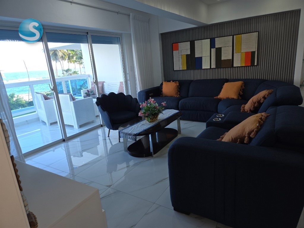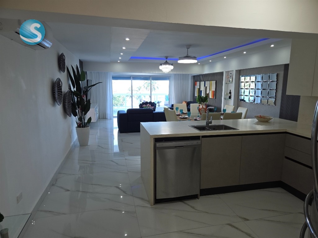 Excelente oportunidad de inversion en juan dolio frente a la playa con terminacion de primera. este majestuoso apartamento de 3 habitaciones a sido recientemente remedolado en puertas, ventanas, pisos, techos, closets, baño y cocina. la habitacion principal consta de un balcon privado con vista al mar, walk-in closet y baño propio. las habitaciones 2 y 3 constan de un baño compartido amplia sala-comedor cocina moderna con desayunador, tope de granito estilo italiana balcon con vista al mar area de lavado