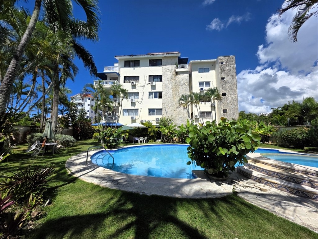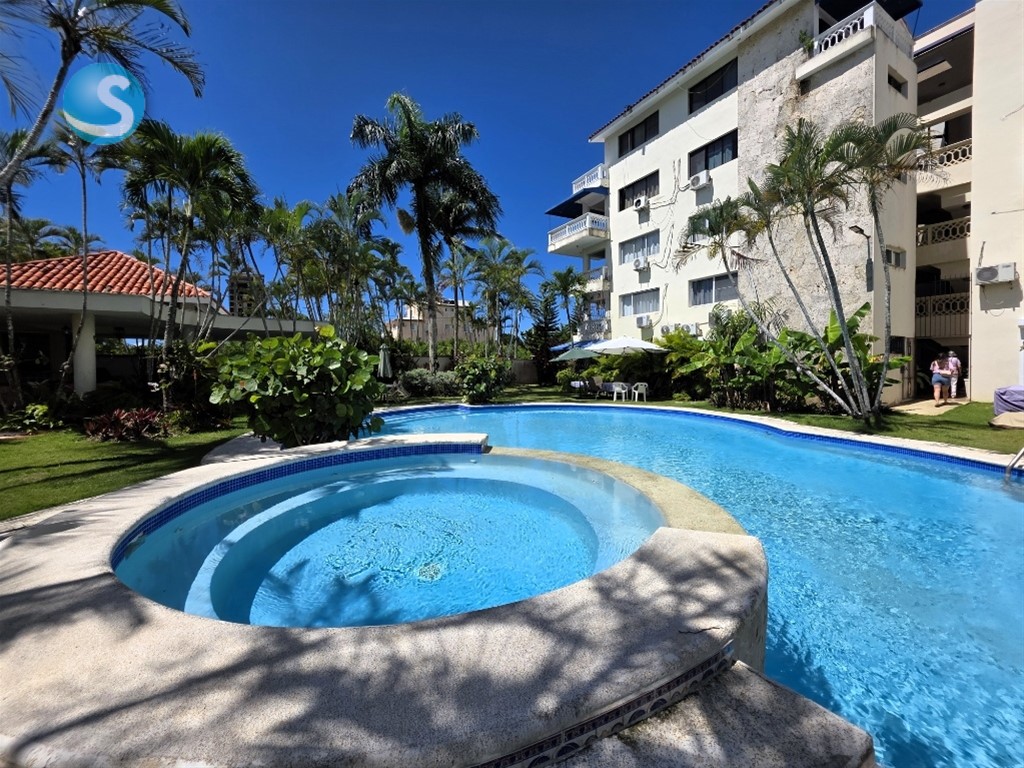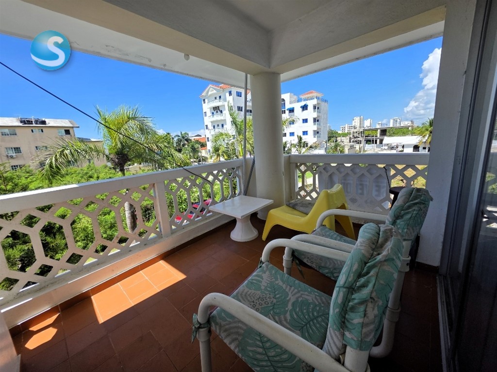 APARTAMENTO EN JUAN DOLIO COMPLETAMENTE AMUEBLADO A SOLO 3 MINUTOS CAMINANDO DE LA PLAYA Distribución: • 2 Habitaciones • 2 Baños • Cocina abierta y equipada • Sala y comedor • Cocina totalmente equipada • Espaciosos balcones en habitaciones y sala • 1 Parqueo destechado • Espacios amplios, iluminados El proyecto es cerrado, control de acceso, GLP con contador, área de piscina con jacuzzis, BBQ, Jardinería y gazebo