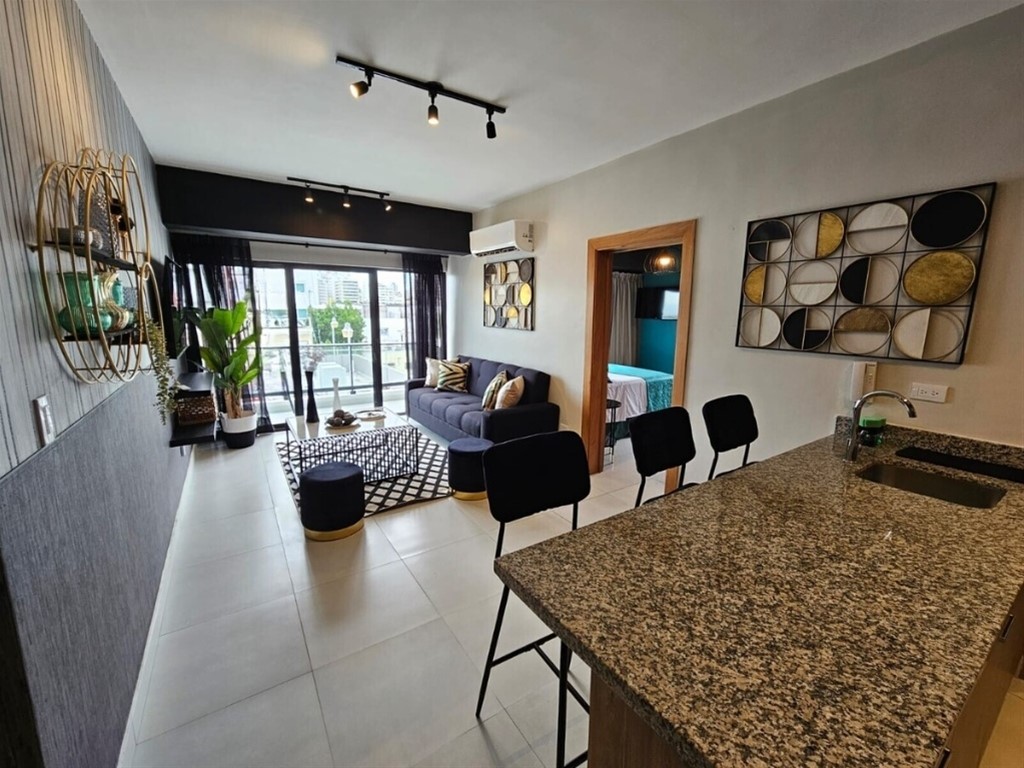 Se alquila apartamento totalmente equipado y listo para recibirlo Superficie 67.39m2 1 habitación con Walkin closet y su baño Medio baño Cocina equipada Sala comedor Área de servicio con lavadora secadora Aires condicionados ultima generación en todas las áreas Balcón Características de la Torre Rooftop BBQ and Lounge. Área Techada Amueblada. Energía Solar de Áreas Comunes. 2 Jacuzzi Gimnasio Equipado. ID: EB-RW8150 Para más información y fotografías adicionales, visita nuestro portal. https://www.tropical-livingdr.com/property/se-alquila-apartamento-amueblado-1-habitacion-ensanche-julieta?agent=oficinat_1