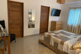 Bonito apartamento en Ensanche Julieta, entrando por detrás de Multicentro Churchill. Totalmente amueblado y equipado. Fresco, con mucha luz natural y brisa cruzada. Orientación NORESTE, 2da con terracita en L: 82Mts de Apto: (70 Mts de apto + 12Mts Terraza) 1Hab 1.5Baños 1Parqueo Techado Amplia sala comedor, baño de visita, 1 habitación amplia, con baño dentro y w/c, cocina modular abierta con tope de granito natural y área de lavado. Aire acondicionado inverter, TV Smart, nevera INVERTER, estufa con extractor y lavadora automática. Área social con lounge y amplia terraza destechada, lobby, gas común con medidor, planta eléctrica full, bomba de agua, cisterna, pozo, apto totalmente enrejado, seguridad 24 hrs, portones eléctricos, entrada controlada con token. PRECIO: USD 750 CODIGO: LCM-A91 Codigo laritza del campo