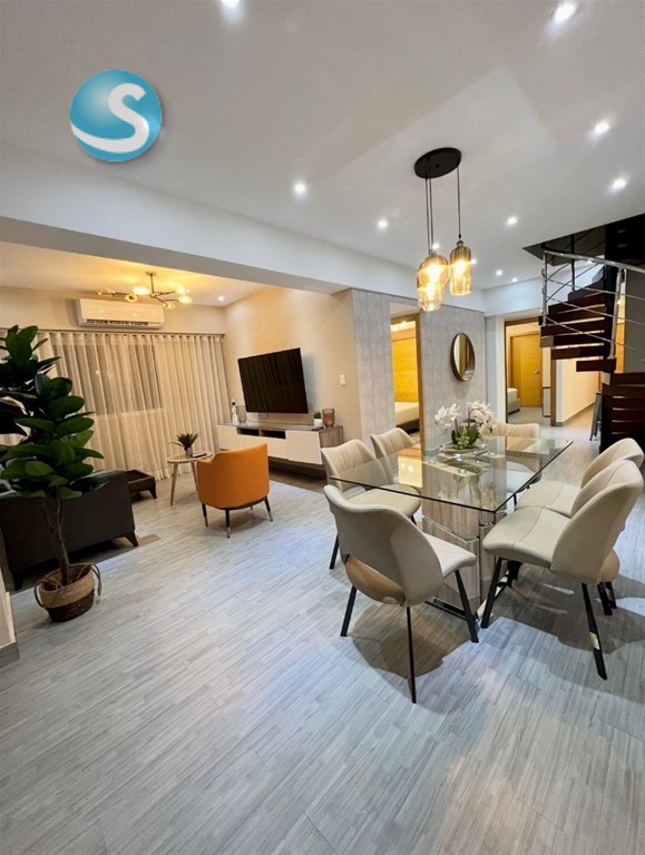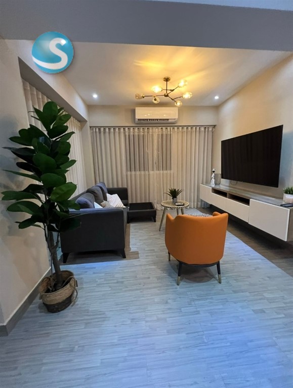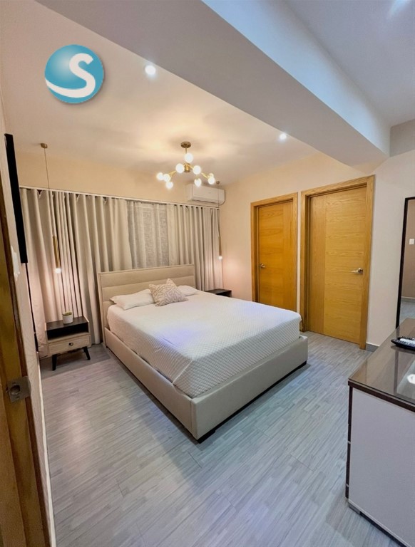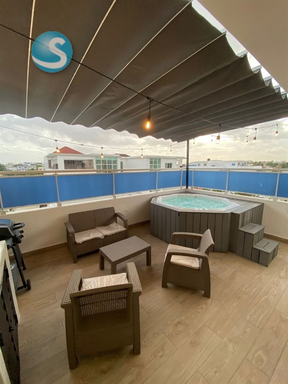 Apartamento en el Ensanche Julieta a pocos metros de la churchill Amueblado moderno 168Mts2 2 parqueos lineales techados Terraza privada con Jacuzzi y BBQ 2 habitaciones Cuarto de servicio 3 baños Balcón Gas común Aires en habitaciones y sala Vigilancia 24h Nota: No Ascensor 4to y 5to nivel