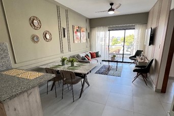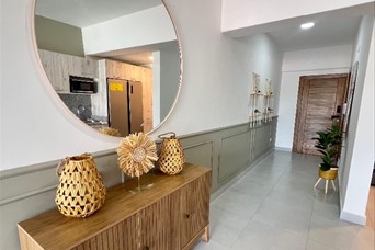 Apartamento en alquiler amueblado nuevo a estrenar de 2 habitaciones en el Julieta Morales detrás del Bravo de la Winston Churchill Características del apartamento: 2 amplias habitaciones con su baño y closet Recibidor Cocina abierta con desayunador Area de lavado Habitación de servicio Sala/comedor Terraza privada baño de visita 2 parqueos lineales techado 2 Piscuzzis con vista a toda la ciudad Rooftop BBQ Y lounge Area techada y completamente amueblada Gimnasio Ascensor de última generación Gas Común con medidor Planta Eléctrica Full Lobby climatizado 3er nivel US$1,600