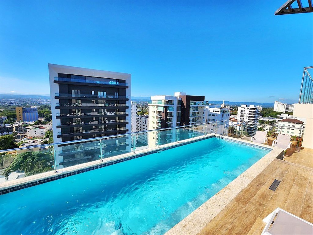 Exclusivo apartamento ubicado en el sector de La Esmeralda, Santiago De Los Caballeros Esta torre de 14 niveles cuenta con las siguientes amenidades: Lobby climatizado Seguridad 24/7 Porton electrico Elevador Planta full Gas comun Cisterna con bomba de agua Area rooftop 350mts2 Area BBQ Piscina Gimnasio Locker privado Parqueos techado Esta unidad ubicada en la parte alta de la torre cuenta con 135 mts2 de dos (2) habitaciones con walk in closets + Dos (2) baños + Medio baño y Un (1) parqueo techado . RENTA: US$1,450.00