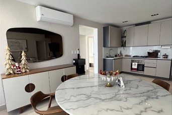 Apartamento en Venta – La Esmeralda, Santiago 11vo. piso | 160 m² de construcción Precio: US$400,000 negociable Exclusivo apartamento completamente equipado, con amplios espacios, terminaciones de alta calidad y acceso a excelentes amenidades, ubicado en una de las zonas más cotizadas de Santiago. Distribución: 3 habitaciones 3.5 baños Habitación de servicio Amplio balcón Sala, comedor y cocina integrados Área de lavado 2 parqueos Equipamiento incluido: Línea blanca completa Tramería de closets Lavadora y secadora Sofá en L, televisor y mueble de TV Muebles para balcón Comedor de 6 sillas Credenza Espejos Bebedero Cortinas con riel hotelero Estantería para organización en habitación de servicio 1 juego de habitación Incluye nevera, estufa, horno, extractor y aires acondicionados en todas las habitaciones y en sala/comedor. Amenidades y áreas sociales: Lobby amueblado y climatizado Jacuzzi Gimnasio completamente equipado Terraza techada y al aire libre en el piso 15 Área de juegos de mesa Oficina administrativa Parqueos techados Portón eléctrico Planta eléctrica full Sistema de cámaras de vigilancia en HD Intercom HD Ducto de basura Sistema contra incendios Sistema de gas centralizado Terminaciones: Pisos en porcelanato de primera Cocina modular con tope y backsplash en cuarzo Barandas en cristal y acero inoxidable Grifería de alta calidad Techos en sheetrock Calentador de gas Salidas de gas y agua para equipos Cisterna Para más información o para coordinar una visita, contáctanos.