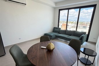 Apartamento en alquiler en La Esmeralda Vive en una de las zonas más exclusivas y céntricas de Santiago. Este hermoso apartamento ubicado en 5to nivel ofrece comodidad, distribución funcional y excelentes amenidades 115mst2 . 2 habitaciones, cada una con su baño Medio baño para visitas Sala Comedor Cocina 1 parqueo techado Totalmente amueblado e incluye: Estufa y horno Nevera Mueble de sala Comedor Camas para niños Habitación principal con su baño Amenidades del proyecto: 6to nivel con área común Piso 12 con área social y piscina Ideal para quienes buscan comodidad, ubicación estratégica y un espacio listo para mudarse. Precio: Us1,300vacío Us1,600 amueblado Contáctanos para más información y agendar tu visita.