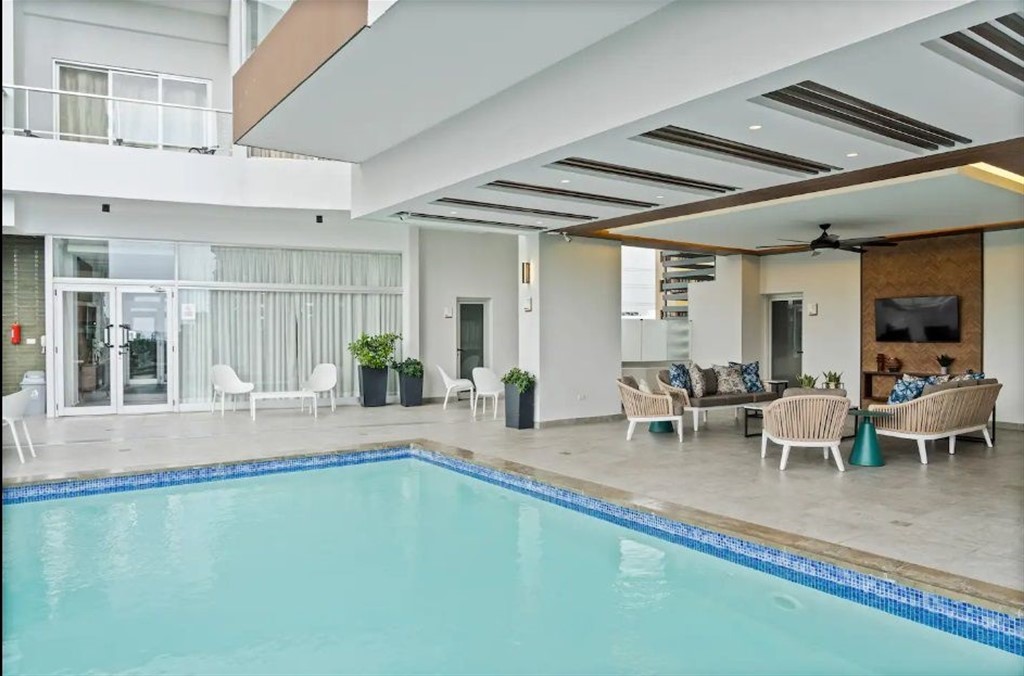 La Esperilla ??Nuevo a Estrenar Piso 5 1 hab 1.5 baños Sala Comedor Cocina Área de lavado 1 parqueo Amenidades : 2 ascensores Lobby Amueblado y climatizado Piscina Terraza techada y destechada Gimnasio Área de niños BBQ Alquiler amueblado mensual: US$1,300