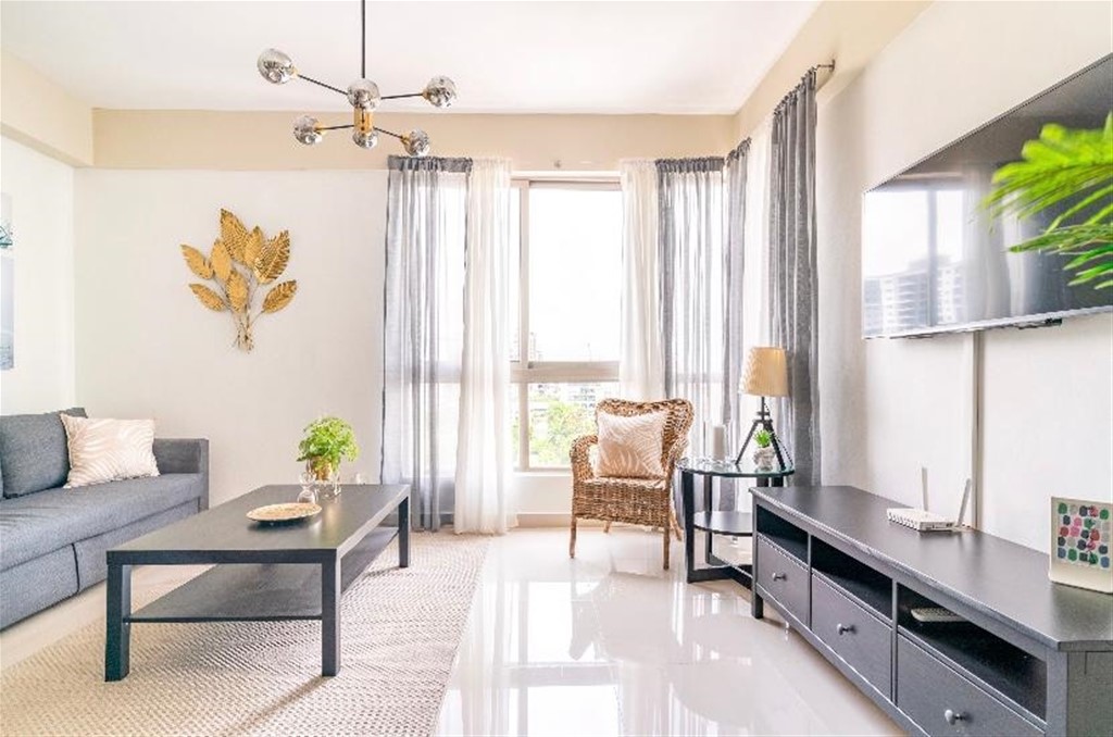 Apartamento amueblado y linea blanca, buena distribucion 1 habitacione con Walking Closet 1 baño en la habitacion 1 baño visitas sala comedor cocina abierta y moderna con desayunador área lavado 2 parqueos Torre: Lobby amplio climatizado, gimnasio, salón, salon multiusos, ascensores, salón de choferes, planta full, seguridad, cámaras, control accesos, parqueos de visitas y zona muy tranquila en calle sin salida El apartamento amueblado tiene, televisores en sala y habitación, aires acondicionados inverter en la habitación y sala, nevera, estufa y extractor, microondas y lavadora y secadora, calentador de agua de línea e intercom.