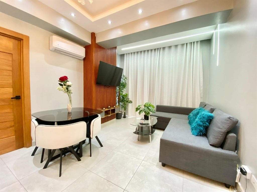 Íntimo y coqueto apartamento amueblado en la Esperilla 1 habitación Sala, comedor Cocina abierta con desayunador Área de lavado Medio baño para visita 1 parqueo Amplio lobby amueblado y climatizado Piscina Gym Sauna Cine Área para niños Salón de eventos