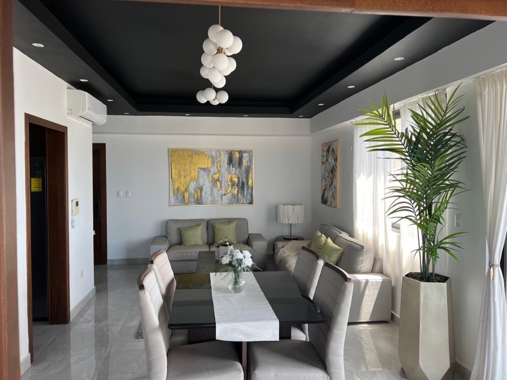 Agente Mayka Estrella Contacto: 849-856-5217 Propiedad: Apartamento Sector: La Esperilla Metraje: 87.50 mts2 Parqueos: 1 Precio De Renta: US$1,800 Negociable Precio De Venta: US$230,000 Se alquila hermoso apartamento, moderno, piso alto y completamente amueblado Características del apartamento: -Balcón -Sala comedor -Una habitación con su baño y walking closet . -Estudio -Baño de visita -Area de lavado -Un Parqueo techado Amenidades de la torre: *Lobby con sistema de climatización *Seguridad con acceso controlado las 24 horas *Sistema de intercomunicación *Picuzzi *Salon para eventos *Gimnasio *Locker personal para guardar La Torre es un moderno y lujoso edificio residencial en La Esperilla y también se destaca por su arquitectura vanguardista y la impresionante vista al mar Caribe. Cerca de restaurantes y Centro Comerciales.