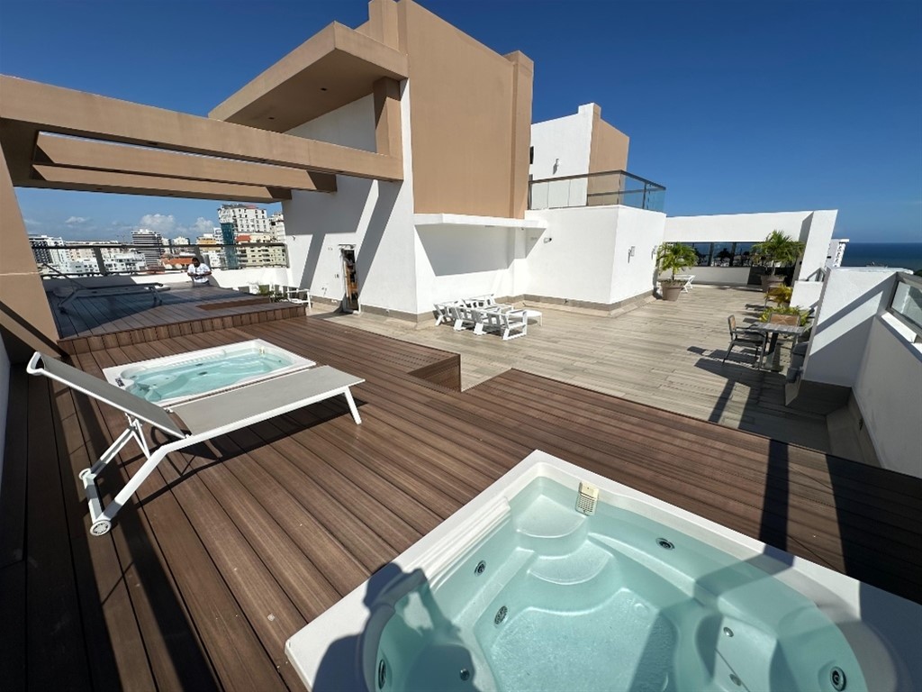 Categoría: Apartamento ( Torre Familiar) Sector: la Esperilla ( ubicación privilegiada en calle sin salida ) 156.24 metros 2 habitaciones 1 Habitación de servicio 3.5 baños balcon 2 estacionamientos techados Nivel alto con vista espectacular de la ciudad Actualmente Alquilado generando ingresos Areas Comunes: 3 jacuzzi Terraza para eventos Gimnasio Sauna Lobby climatizado Parqueos de visita RD$ 16,000 ( mantenimiento Mensual )