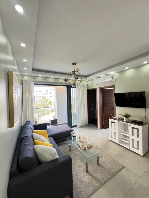 Citymax Santo Domingo Alquila Apartamento de 1 habitación, amueblado en La Esperilla, en Torre Moderna con hermosas areas sociales. Caracteristicas del Apartamento: 1 habitacion 1.5 baños Sala Comedor Cocina Area de lavado 1 Parqueo 72 mts de construccion con el parqueo incluido Esta Torre cuenta con Areas Sociales en el piso 15 como: Piscina Gimnasio Business Center Salón de usos múltiples También cuenta con Lobby, ascensor, Seguridad 24/7, Planta eléctrica full, gas común. Privada Con Vigilancia Tipo De Aire Acondicionado Minisplit Escuelas Cercanas Área Social Exterior Piscina Tipo De Terreno Plano Gimnasios Cercanos Linea Blanca Cisterna Balcon Si Accesos Habitación De Servicio No tiene Vigilancia PAA-003-05-25