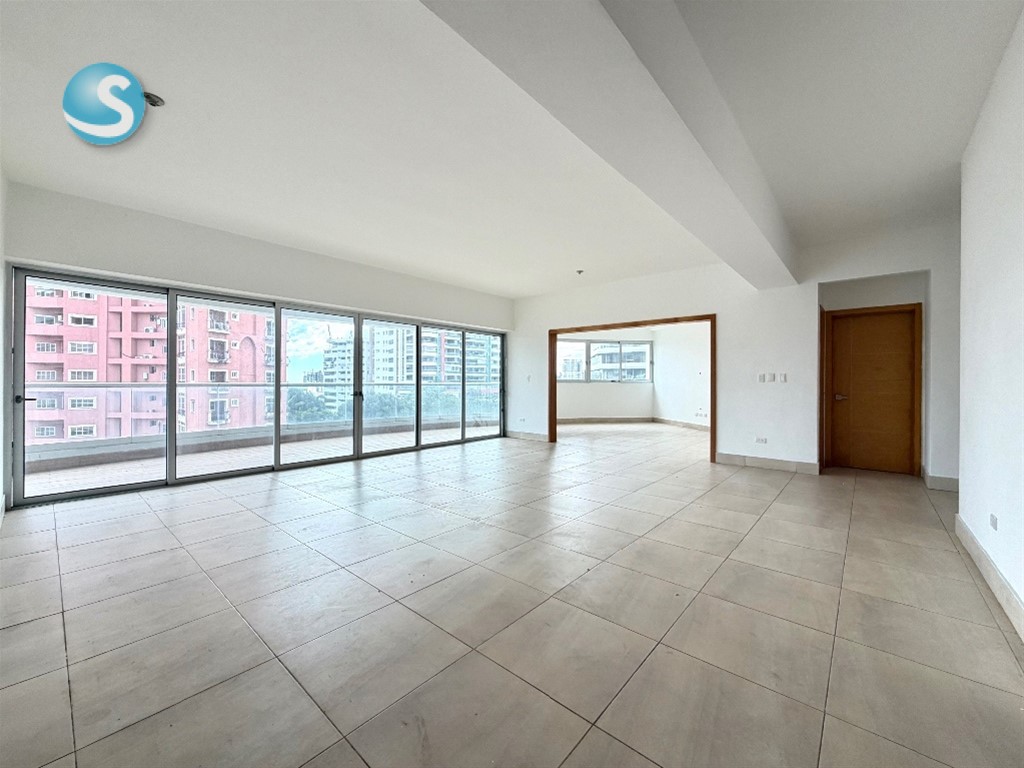 La Esperilla Amplio Apartamento en Moderna Torre Familiar. PRECIO US$385,000 250 metros 3 habitaciones Estudio 3.5 baños Amplio balcón tipo terraza Sala Comedor Cocina Cuarto de servicio Área de lavado 2 parqueos Amplio Locker Amenidades: Piscina Gimnasio Terraza Amueblada Salón Multiuso Lobby Dos (2) Ascensores 7 parqueos para visitantes Ducto de basura Planta Eléctrica Full