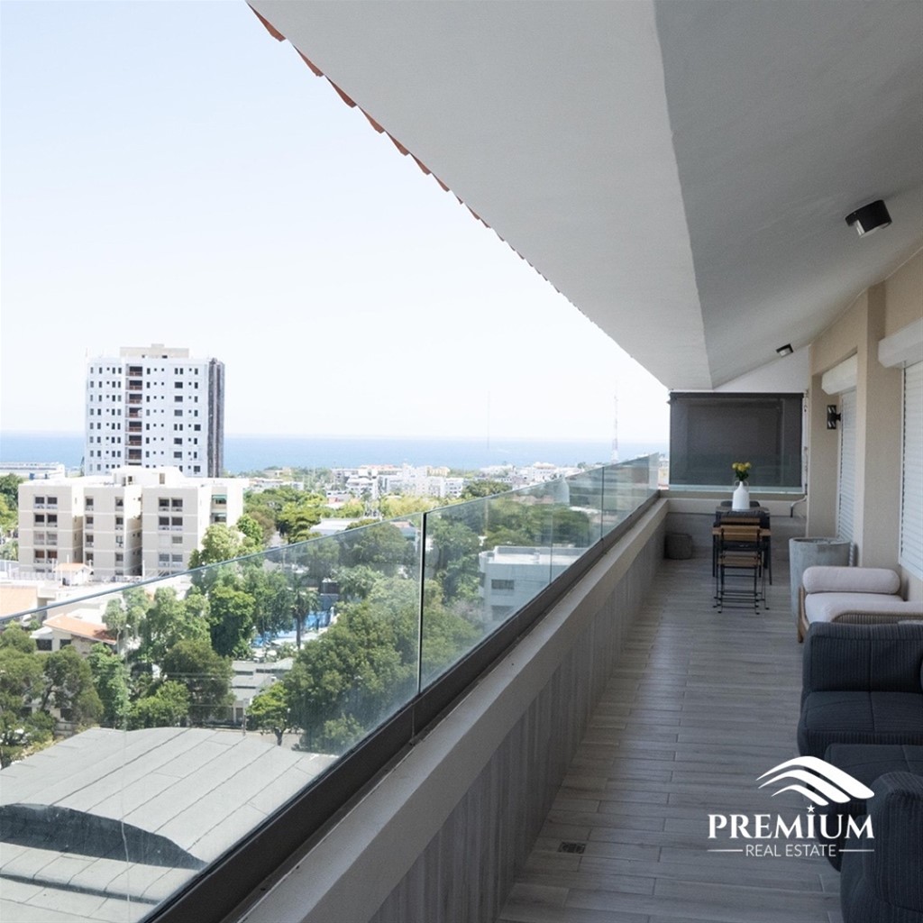 Alquiler PH Amueblado de Lujo en La Esperilla con vista al Mar Piso 8 600 Metros 5 parqueos Locker 4 Habitaciones 4.5 Baños Distribución Primer nivel: Hall de entrada Ante Sala Sala Comedor Cocina fría con isla central y desayunador Cocina caliente Estudio 2 habitaciones cada una con su baño y closets Area de lavado Cuarto de servicio Distribución Segundo Nivel: Habitación Principal con baño y 2 walk-in closets y vista al mar Habitación secundaria con baño y walk- in closet Sala de estar Terraza Techada y Destechada con vista al Mar Bbq Picuzzi con 2 Chaise long Amenidades: Lobby Sala de Espera amueblada Gimnasio Gazebo 4 parqueos de visitantes Precio de Alquiler Amueblado US$10,000