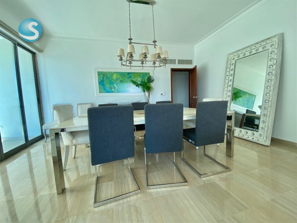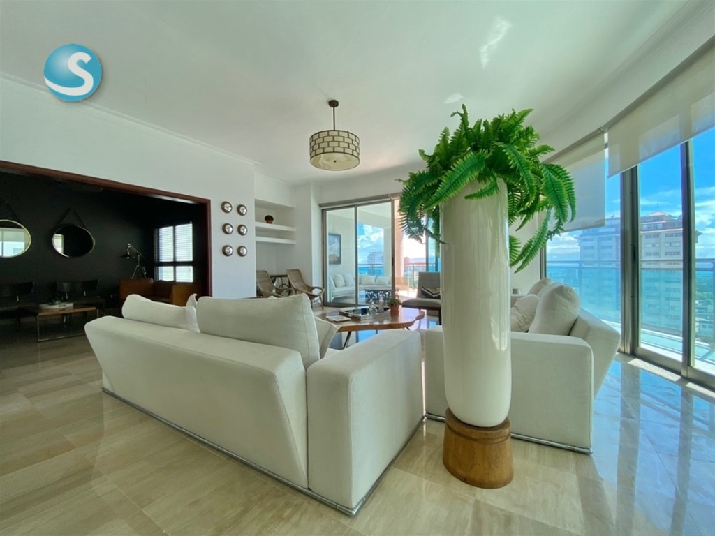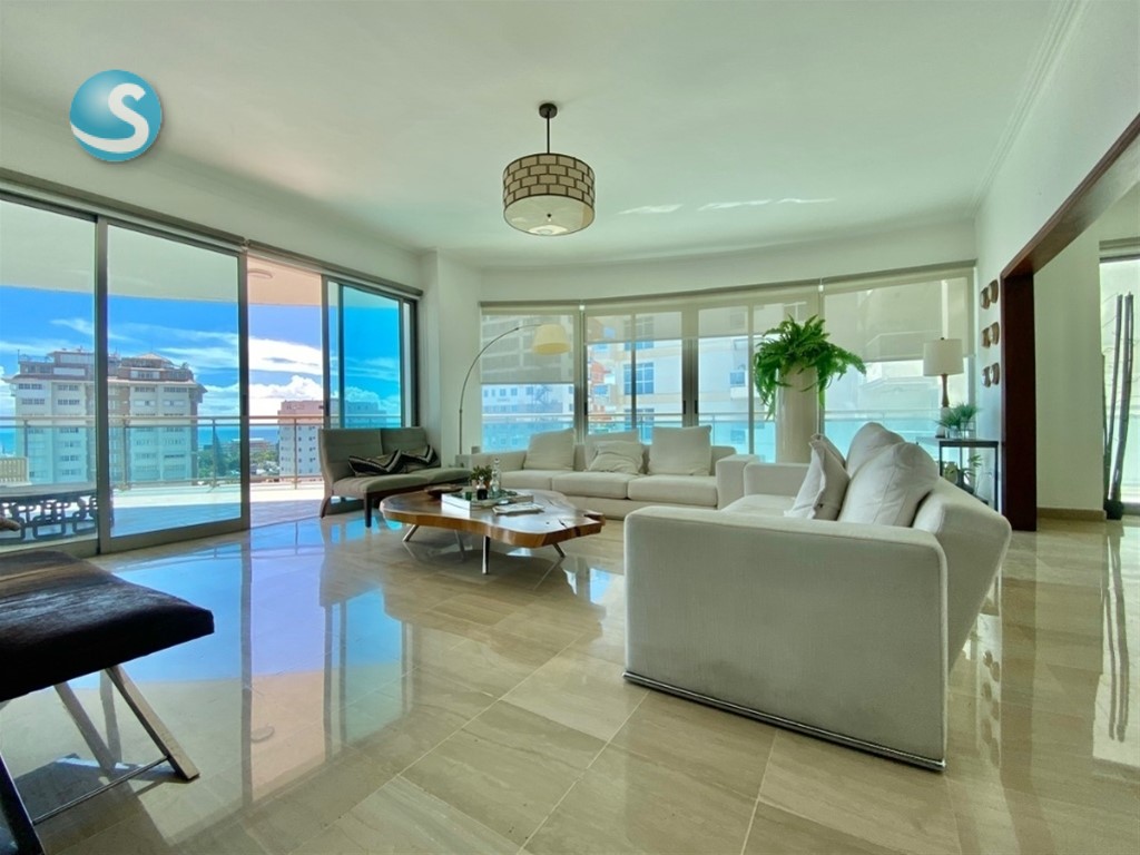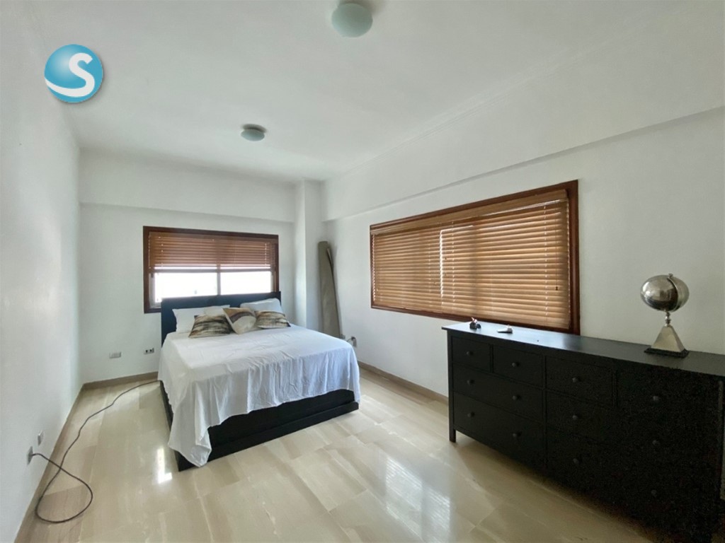 Exclusivo y elegante apartamento ubicado en Ensanche La Esperilla 332 mts neto 365 Total Tres (3) habitaciones Walking - in clóset en cedro 3.5 baños Baños principal con jacuzzi Comedor Cocina con comedor integrado Walk- in pantry Comedor Sala Estudio Bar Amplio balcón Lobby interior privado Área de lavandería Habitación de servicio Dos (2) parqueos techados paralelos Locker Características Walk in clóset en cedro Pisos de mármol Techo en sheetrock Aire central Línea blanca Shutters en todas las áreas Ascensor exclusivo que abre directamente al lobby interior Áreas social: Salón de eventos Piscina Bar Gimnasio Doble sauna Área de niños Seguridad 24H Portón eléctrico Lobby climatizado Dos (2) Planta full Gas común Tres (3) ascensores Precio de venta: US $595,000.00 Mantenimiento: $36,000.00 (El mantenimiento incluye servicios permanentes de plomero, pintor y electricista )