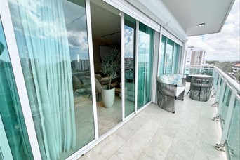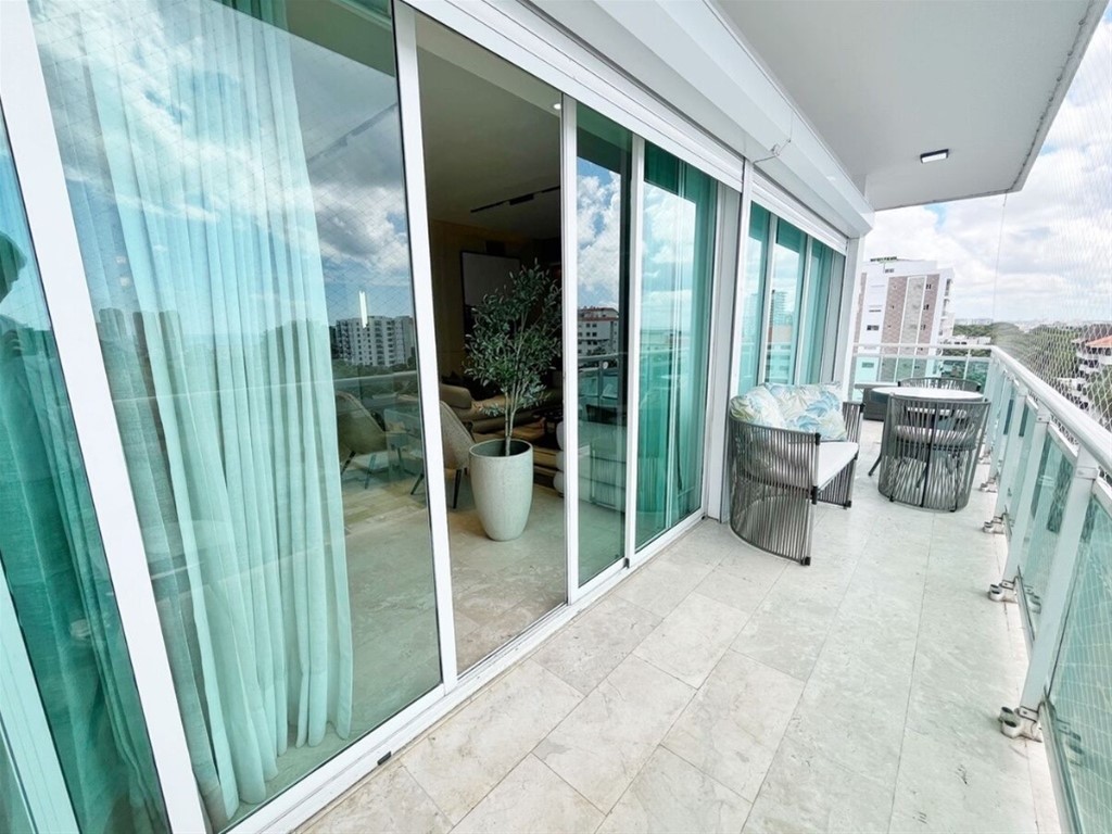 VENTA Totalmente Amueblada en La Esperilla Características Totalmente amueblado 255 mt2 1 apartamento por piso 3 habitaciones (principal con WC) 3.5 Baños Cocina cerrada Amplia Sala Comedor Shutters Balcón en L Área de lavado Cuarto de servicio 2 parqueos paralelos 2 Lockers Características de la Torre: Lobby amueblado Ascensor Planta Eléctrica Full Gas común Intercom Portero Portón eléctrico Seguridad 24 Horas Precio: US$ 360,000