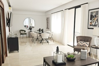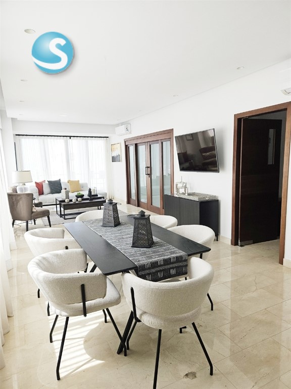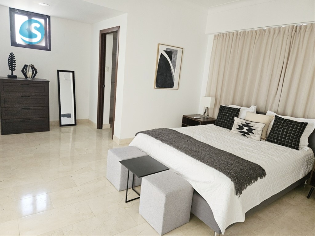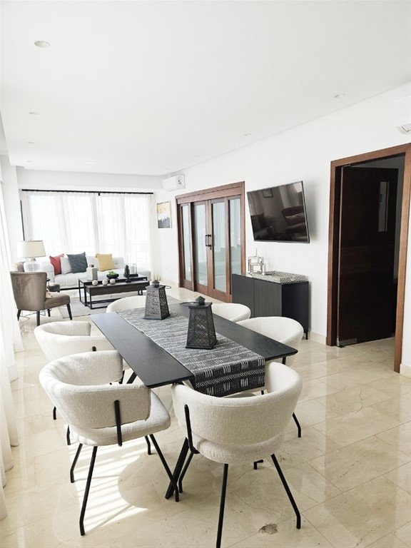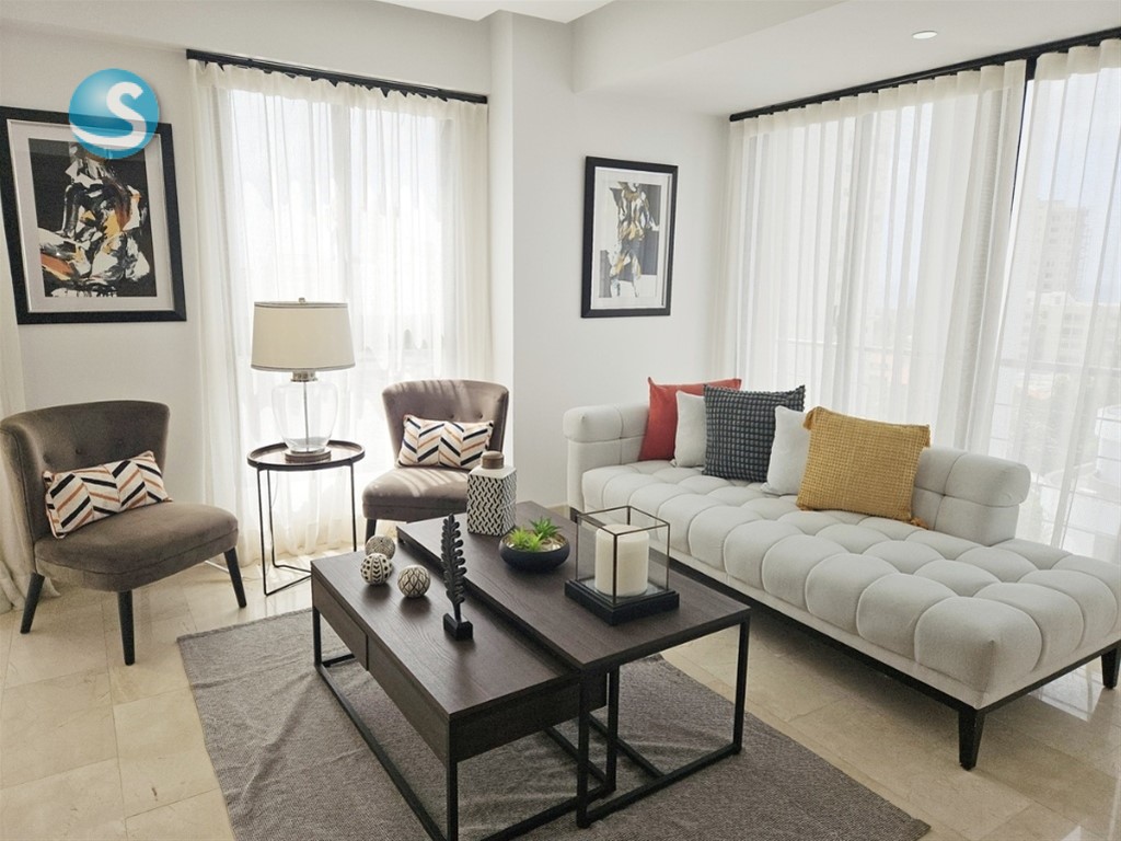Moderno apartamento en venta en La Esperilla, con espectacular vista al mar. 85 metros 1 habitación con su baño Recibidor Sala, comedor Balcón Cocina, área lavado 1 parqueo techado Torre con área social Jacuzzi Gimnasio entre otros US$198,000