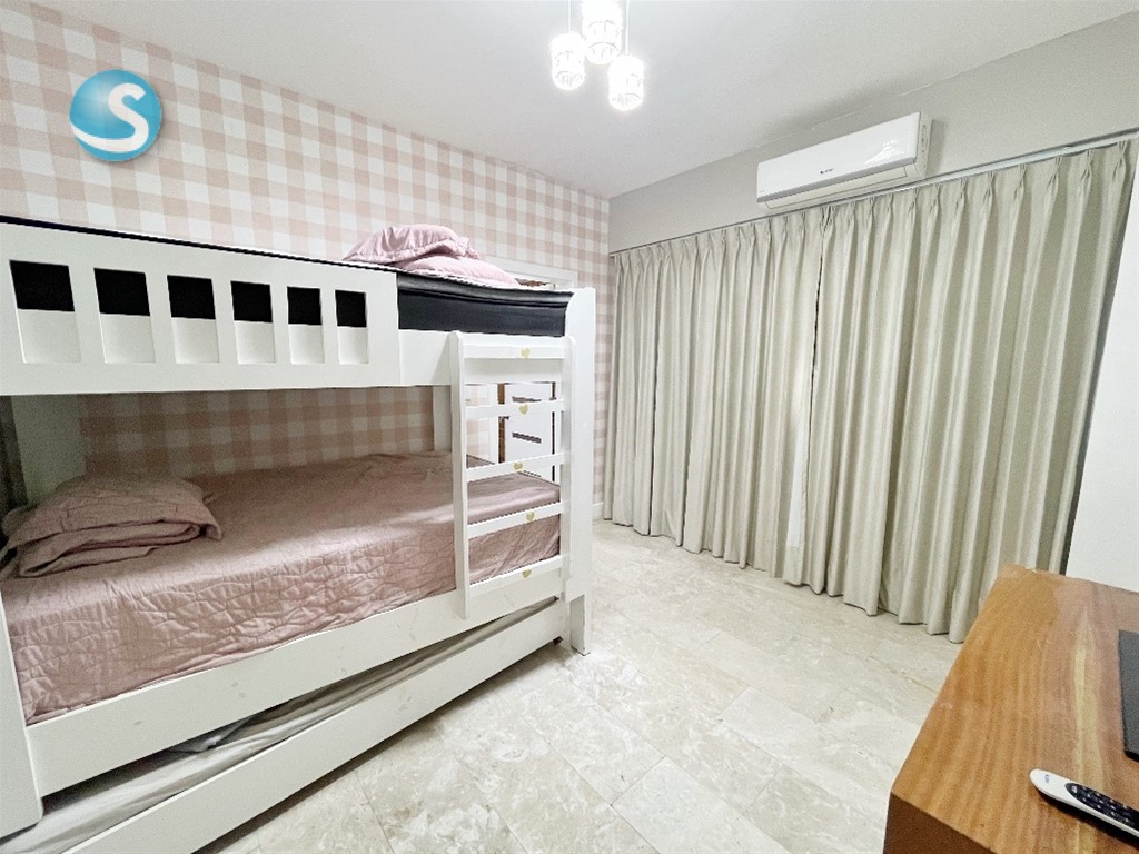 Características -Totalmente amueblado -255 mt2 -1 apartamento por piso -3 habitaciones (principal con WC) -3.5 Baños -Cocina cerrada -Amplia Sala -Comedor -Shutters -Balcón en L -Área de lavado -Cuarto de servicio -2 parqueos paralelos -2 Lockers Características de la Torre: -Lobby amueblado -Ascensor -Planta Eléctrica Full -Gas común -Intercom -Portero -Portón eléctrico -Seguridad 24 Horas Precio: US$ 360,000 Gabriel Espaillat 829.308.1581